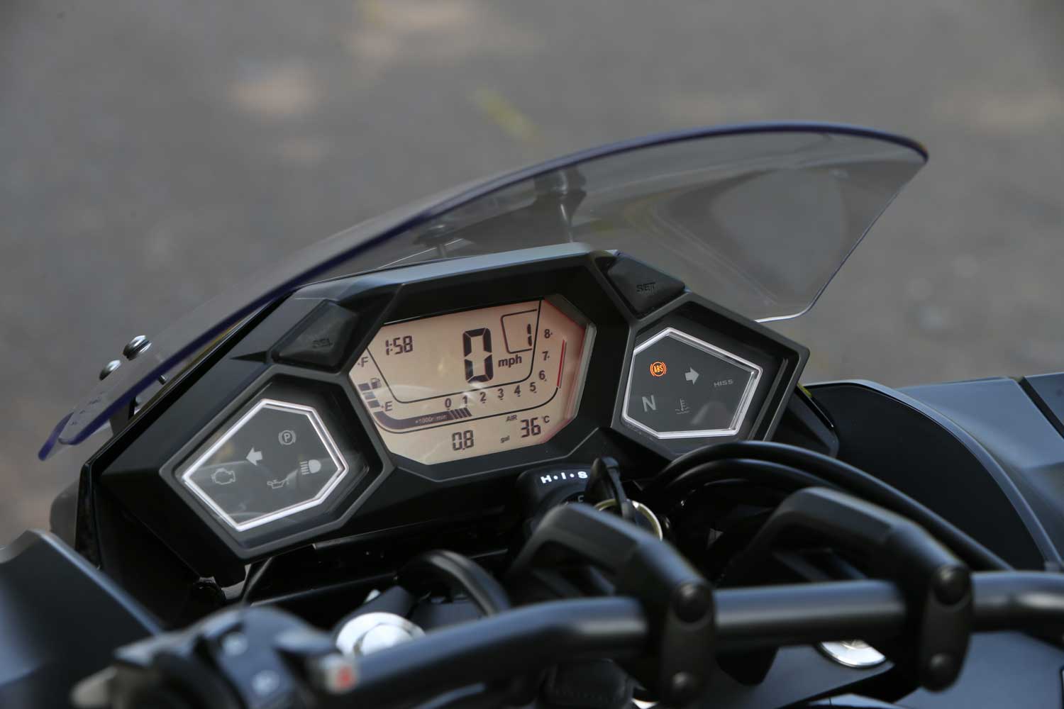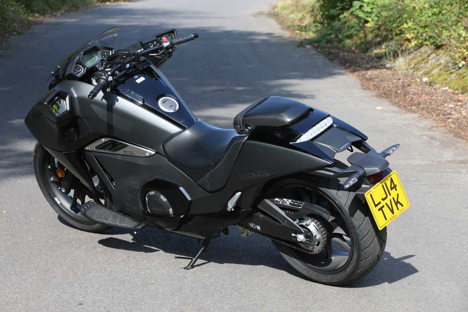 Once under way the Honda rumbles along very pleasantly, and the dual-clutch system suits it well. As with other DCT models, you get a choice of manual shift, using your left hand’s index finger and thumb to go up and down through the six-speed box; or automatic, which can be set to Drive or Sport, the latter giving more revs before the system seamlessly changes up. As with other DCT bikes, I found that even in Sport mode the system tends to change up slightly too soon, sometimes when you don’t want it to (ie in the middle of a roundabout). But the auto modes give a pleasantly relaxed feel; the manual mode’s paddle change is impressively slick; and I enjoyed not having to change down or find neutral at the lights.