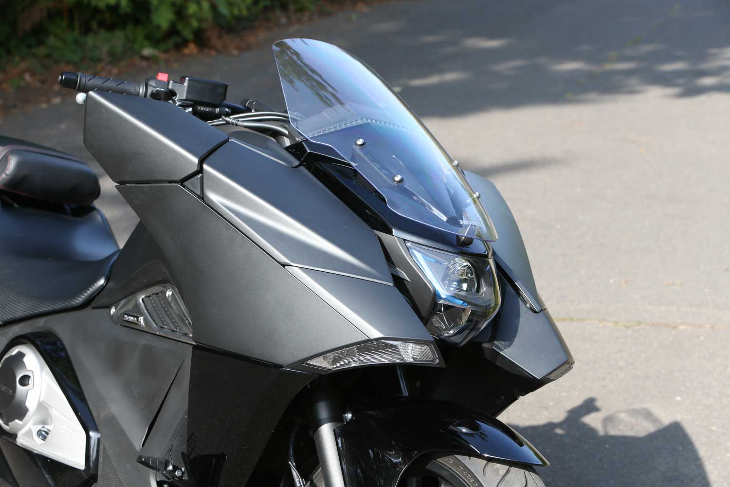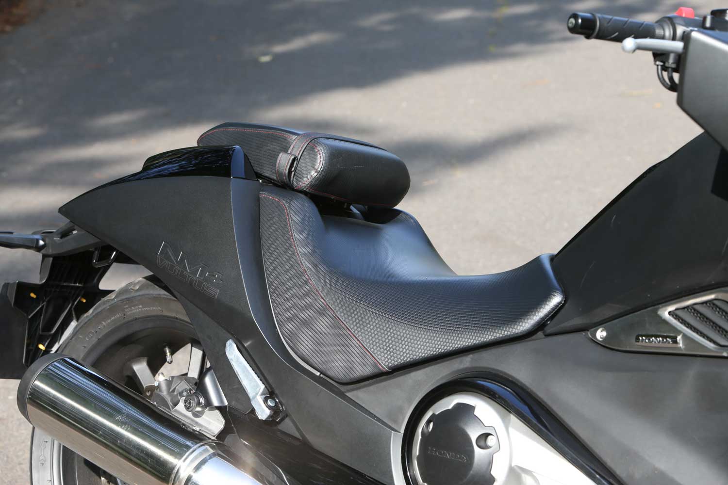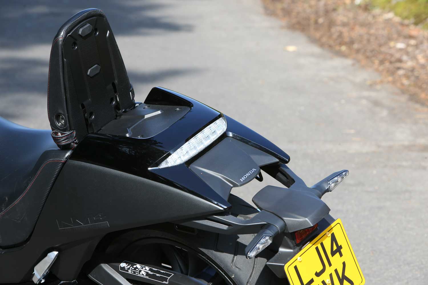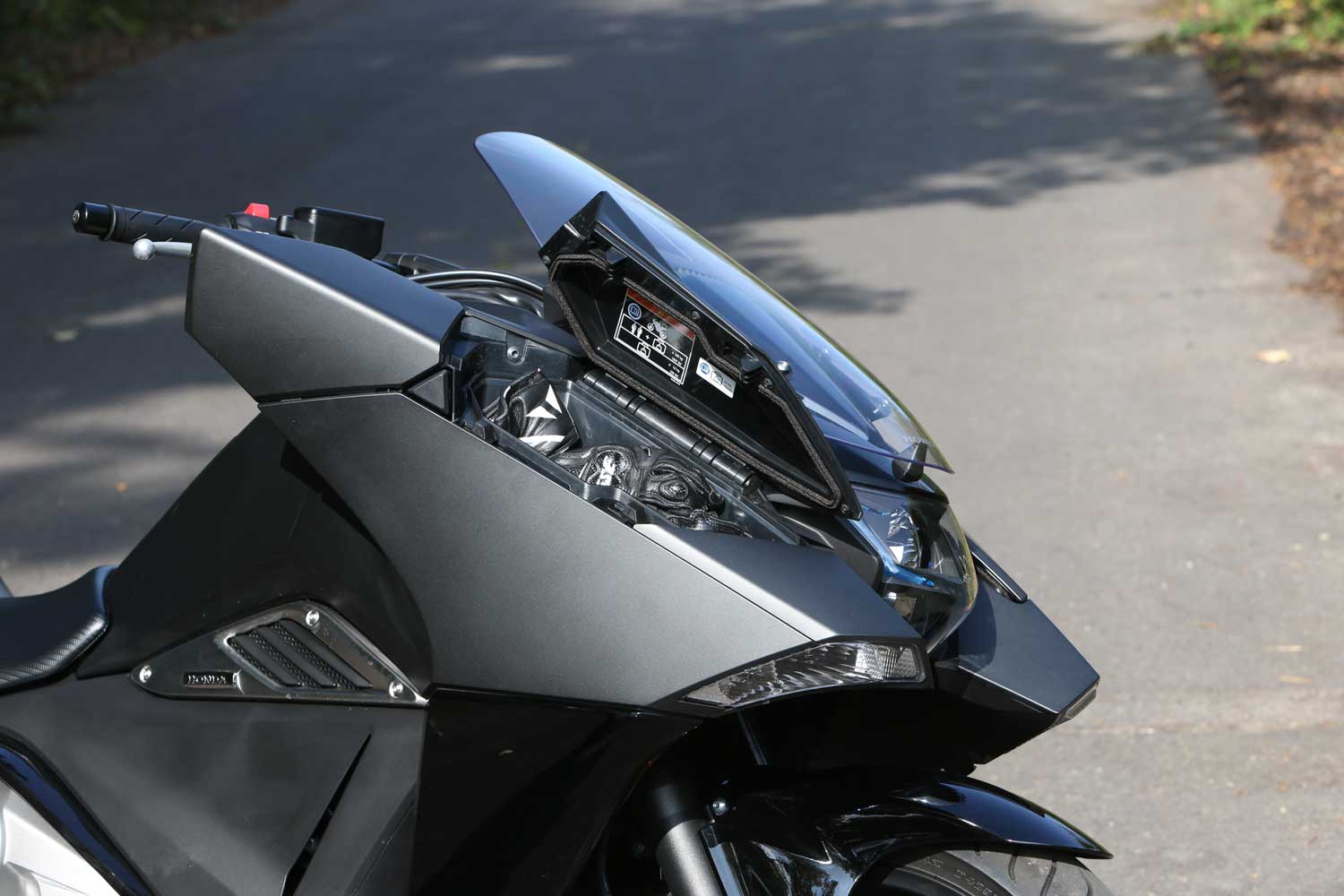The fairing glove pockets’ small size is made worse by the poor detailing. The left one holds an electrical socket but I didn’t fancy the idea of my fragile phone rattling around in a hard, strangely shaped compartment that could easily have been made much more accommodating. The pillion seat hinges to form a useful backrest, but it’s a shame Honda didn’t design it to reveal a luggage rack with bungee points, as the similarly hinged seat of BMW’s R1200C did 18 years ago.