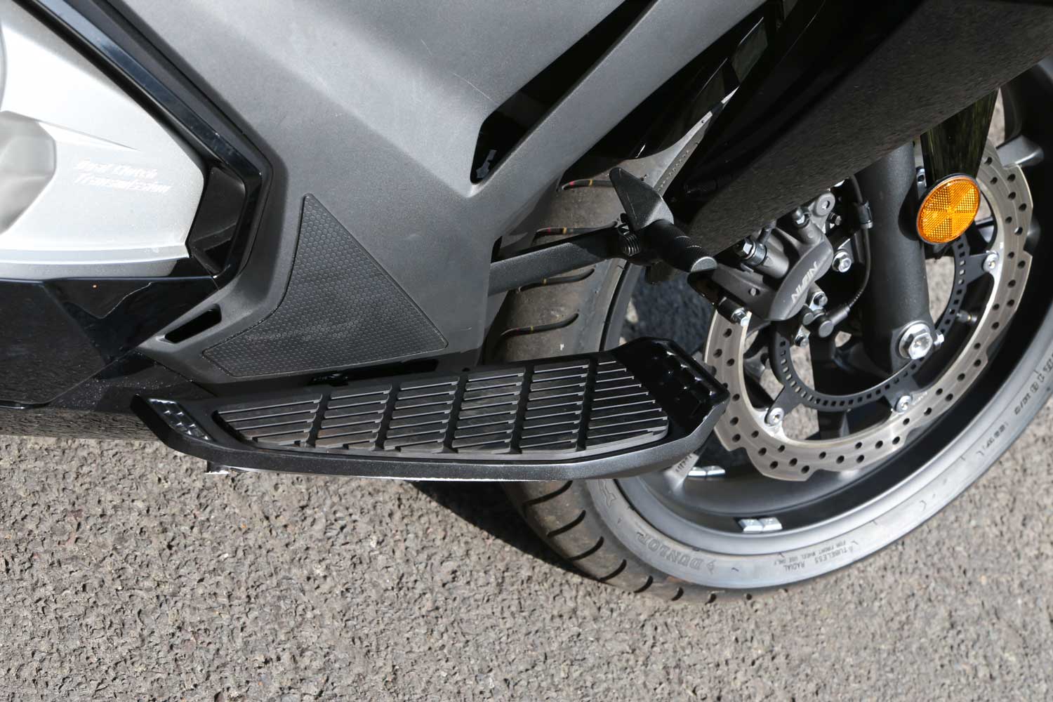 The basics of engine and chassis performance make for a slow-revving, respectably fast and very stable giant scooter. The weight can make it feel unwieldy at slow speed, not helped in traffic by the fairing’s width and the DCT system’s slight jerkiness and lack of clutch. But at least the low seat will enable riders of all sizes to put a foot down easily.