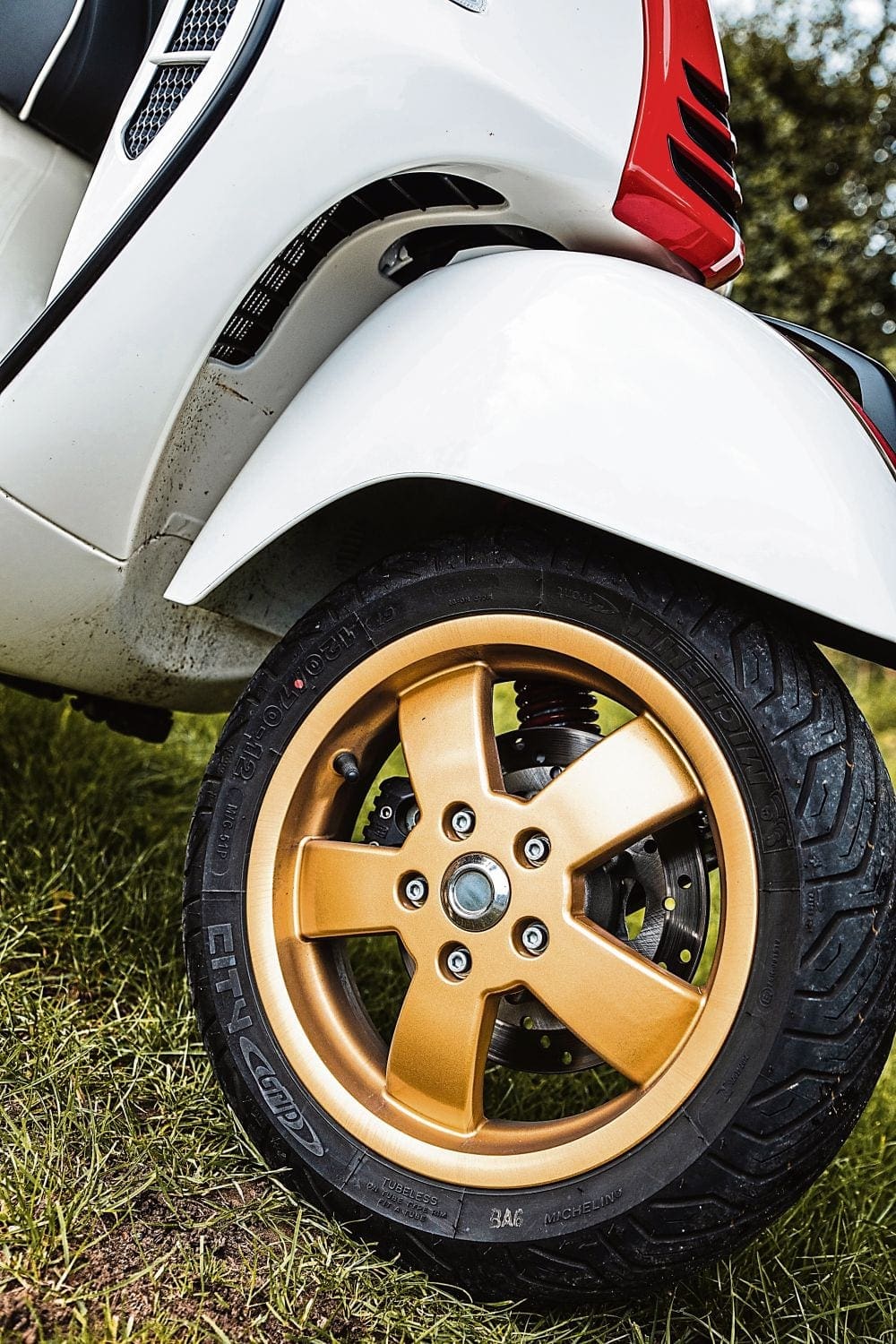 Firstly, just look at the thing. Vespa’s not reinvented the wheel, or anything. In fact, it’s changed very little in years and years. But then again, why should it? It works – and you don’t fix what’s not broken. Ok, so it’s not quite the same shape as the original, sharper-edged machines of the past – but it’s immediately identifiable and turns heads wherever you go. That’s particularly true when you’re riding the Super Racing Sixties model. I don’t recall ever getting so much attention when riding through town. And it’s easy to see why… that red and white paint scheme with gold rims looks fantastic. Don’t you think?