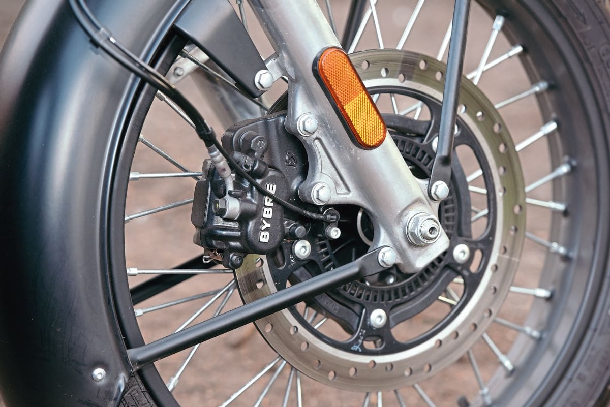 Rear as expected, but front is rubbish. Bybre callipers used by many and are good, so hopefully it’s just cheap pads. CEAT tyres feel fine.