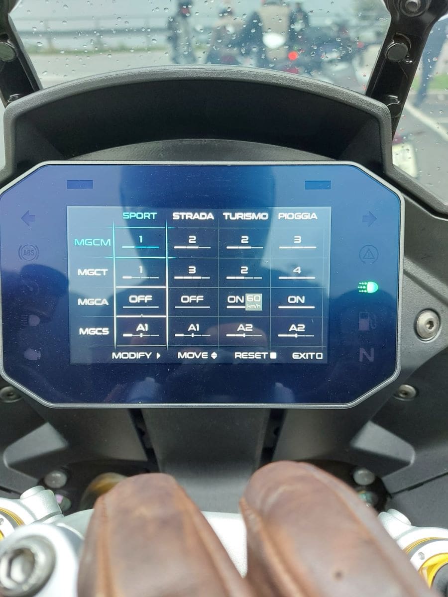 The Ohlins semi active suspension is very clever. You can either modify the settings yourself, but it’s also capable of doing the job itself using the automatic mode which adjusts the front and rear compression and rebound damping.