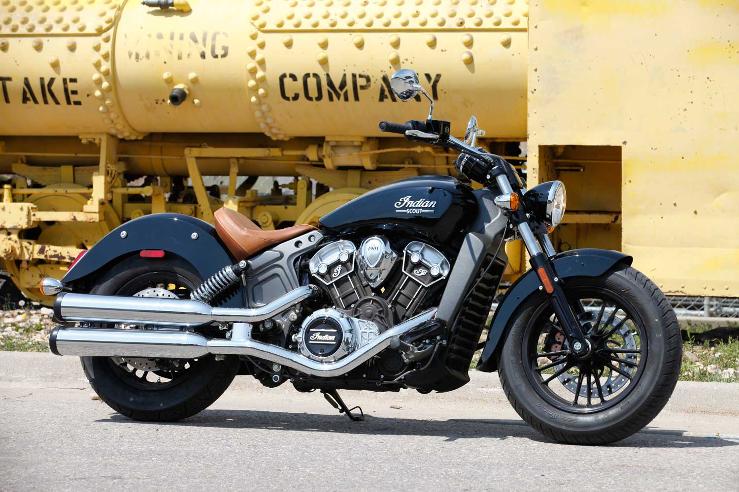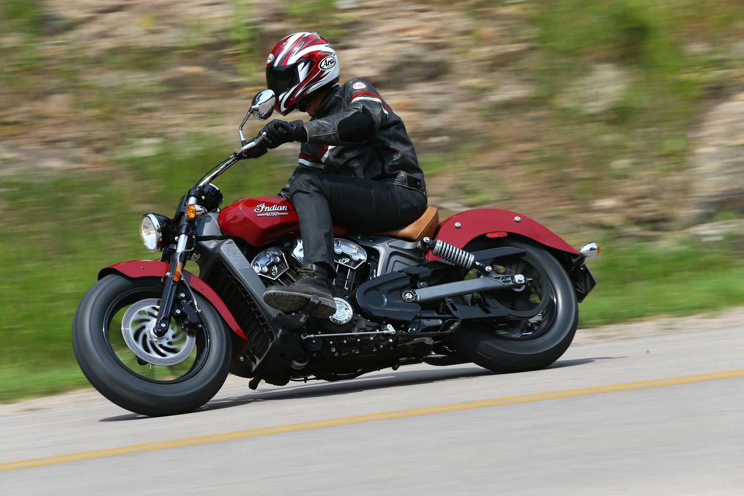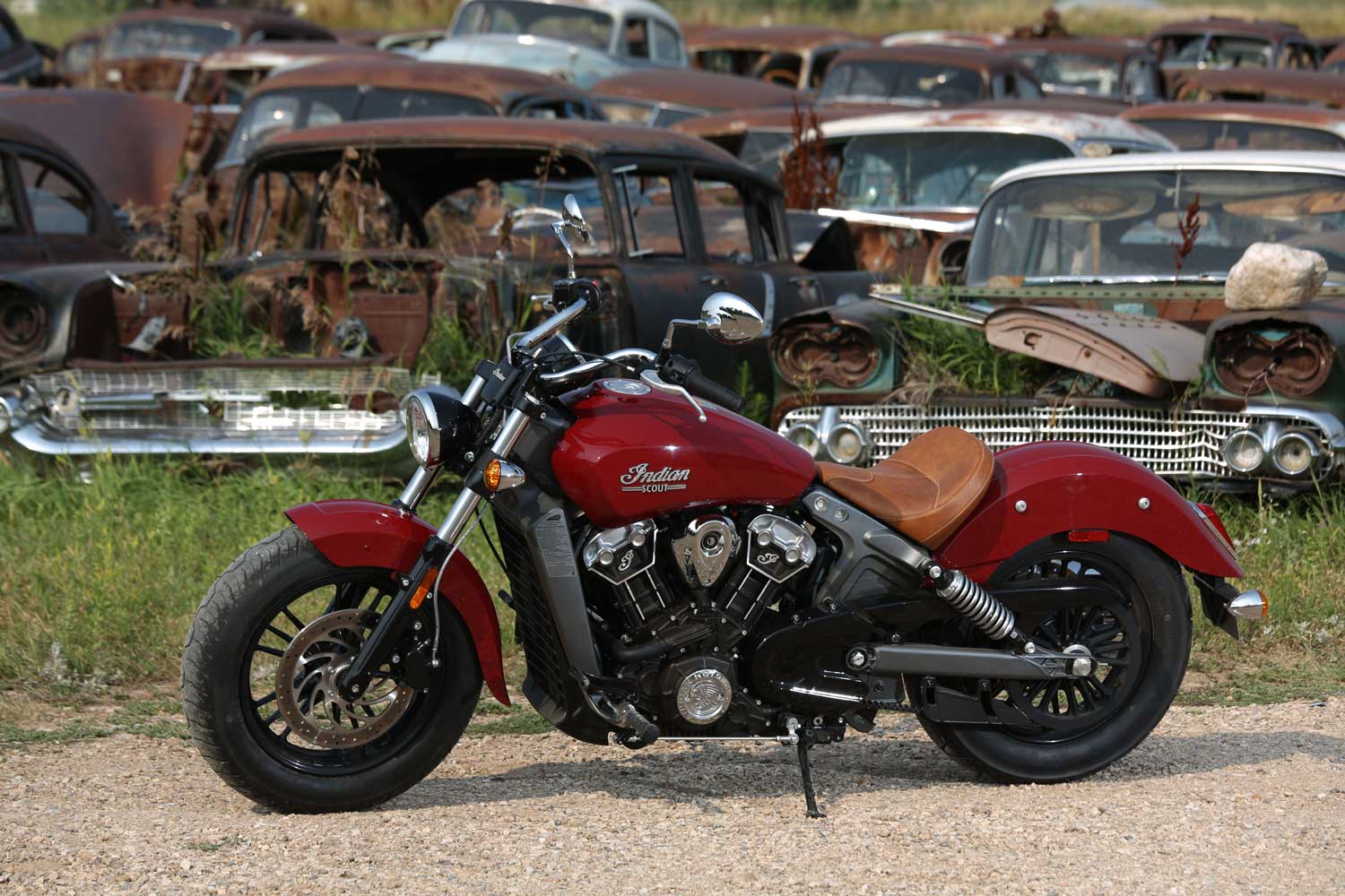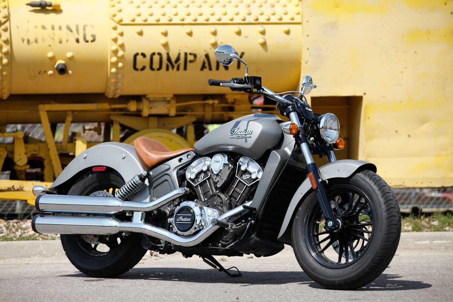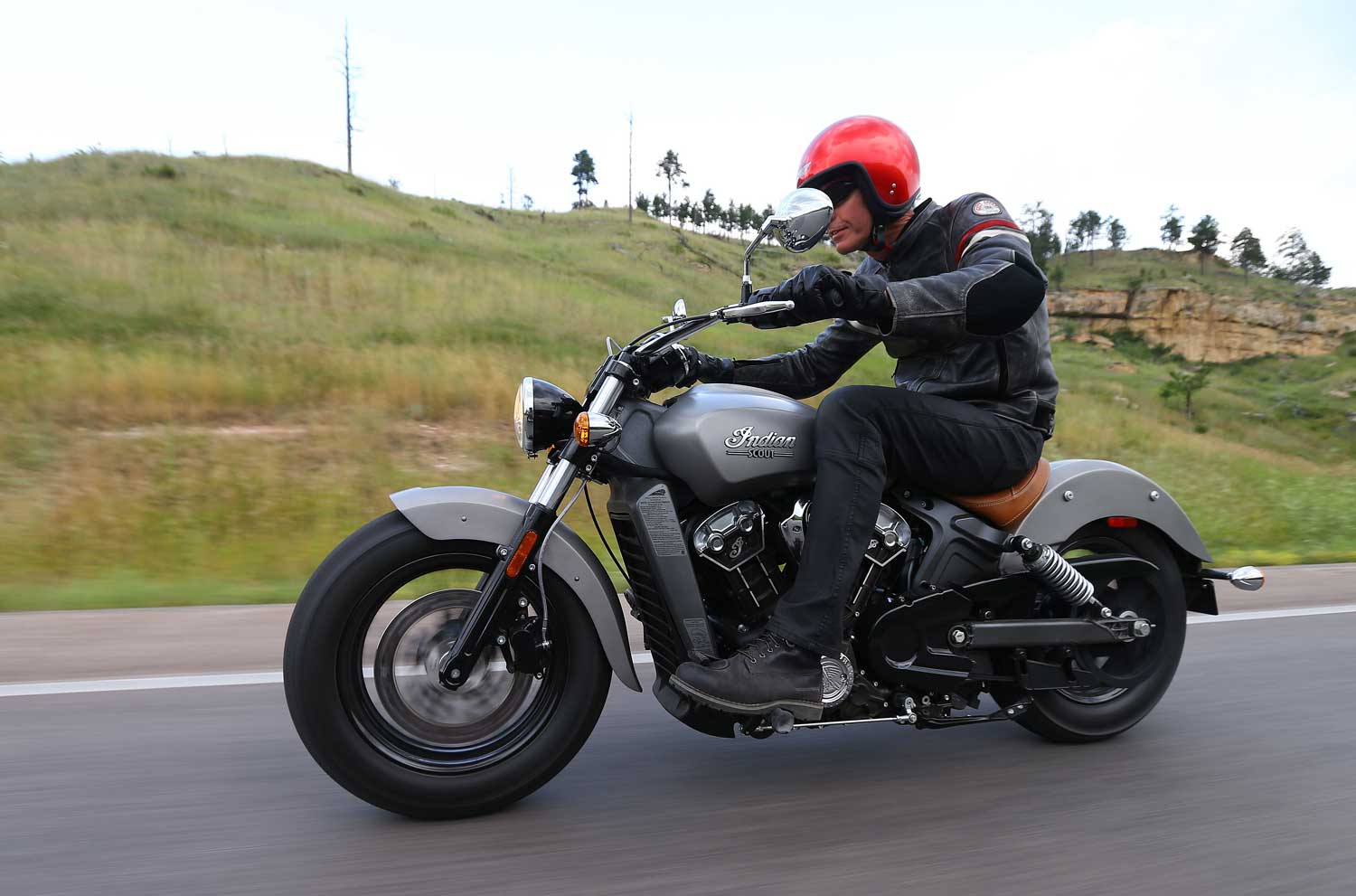 It’s a far cry from the Chief’s old-school air-cooled, pushrod-operated V-twin, which set its cylinders at a 49-degree angle because that was the closest that Indian’s engineers could get to the traditional 42 degrees. The liquid-cooled Scout has a wider, 60-degree cylinder angle, eight valves and DOHC operation, allowing better breathing for an injection system that is controlled by ride-by-wire throttle. There’s no attempt to add unnecessary cooling fins; instead the Scout’s engine cases are sculpted to show the shape of the components within.