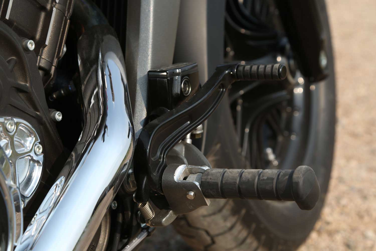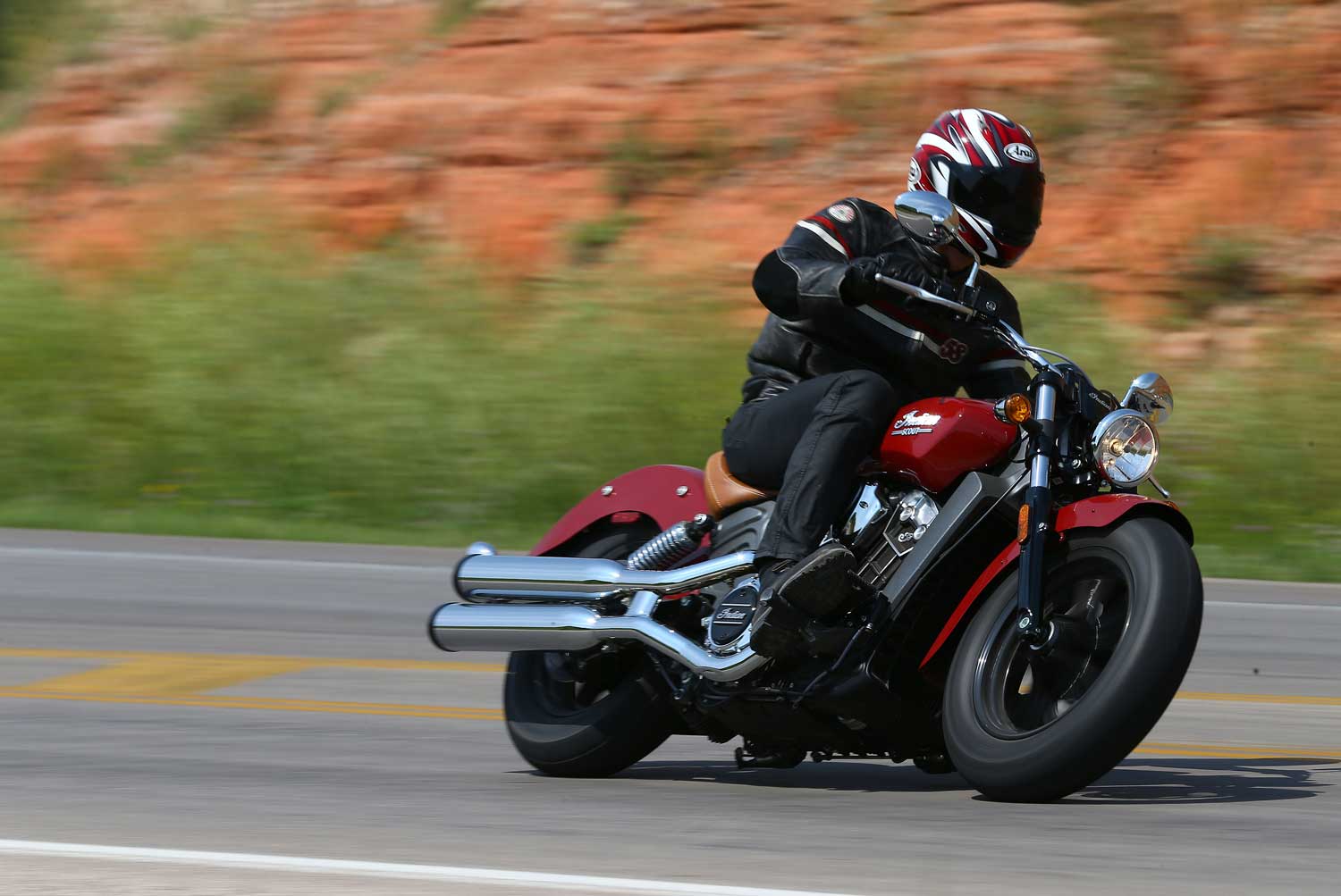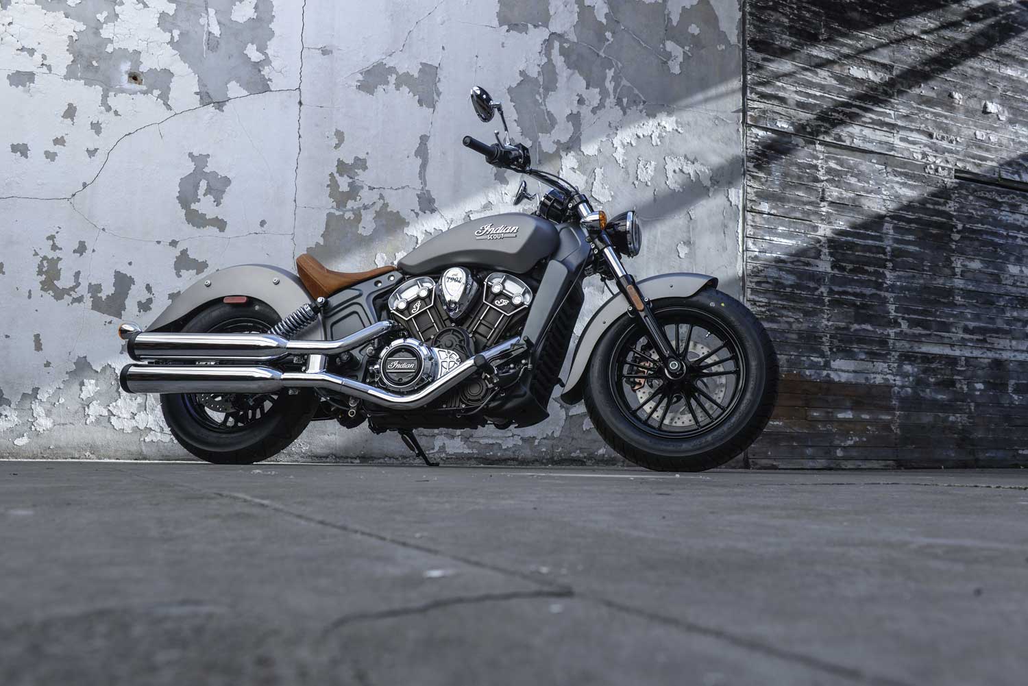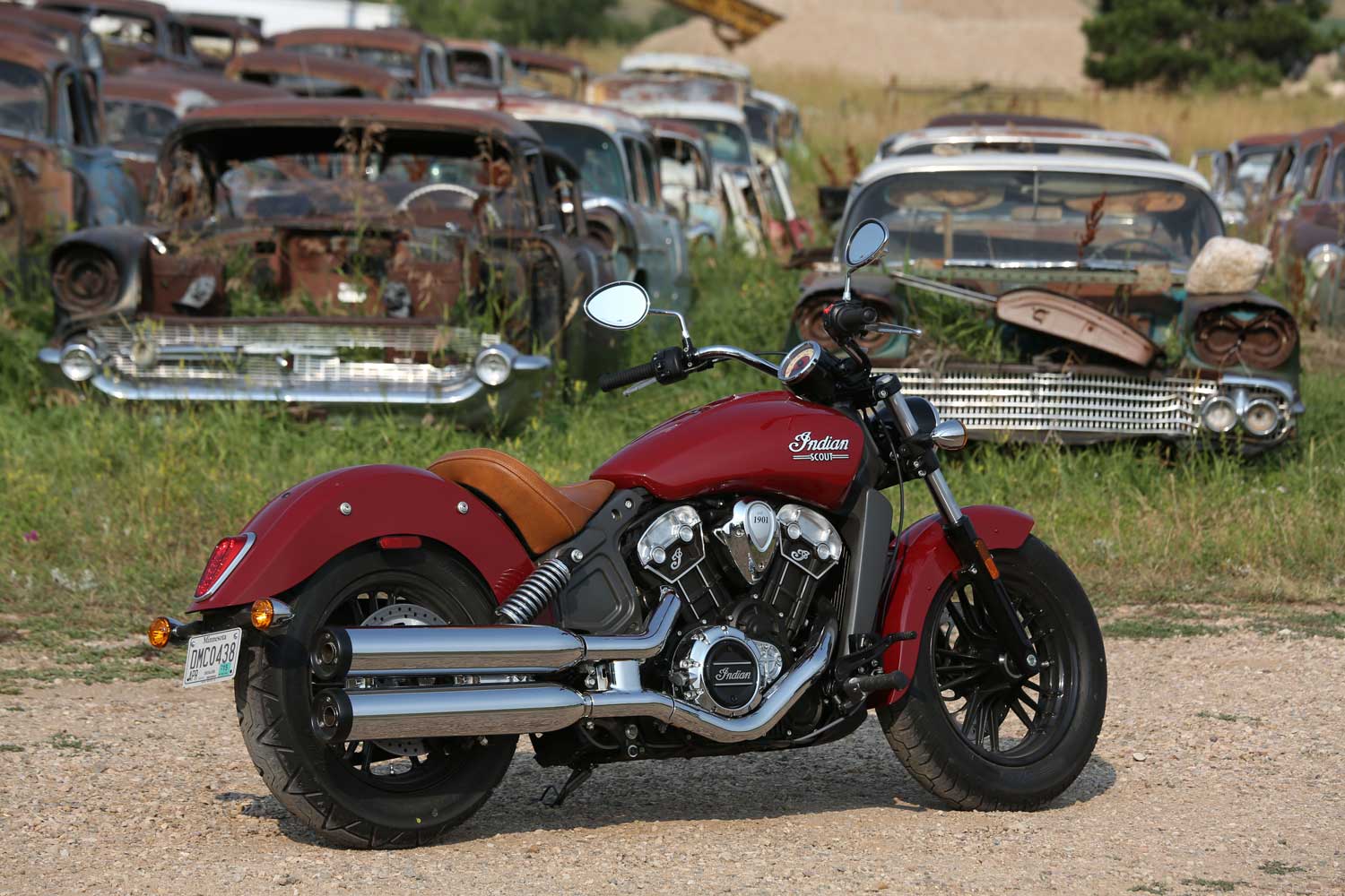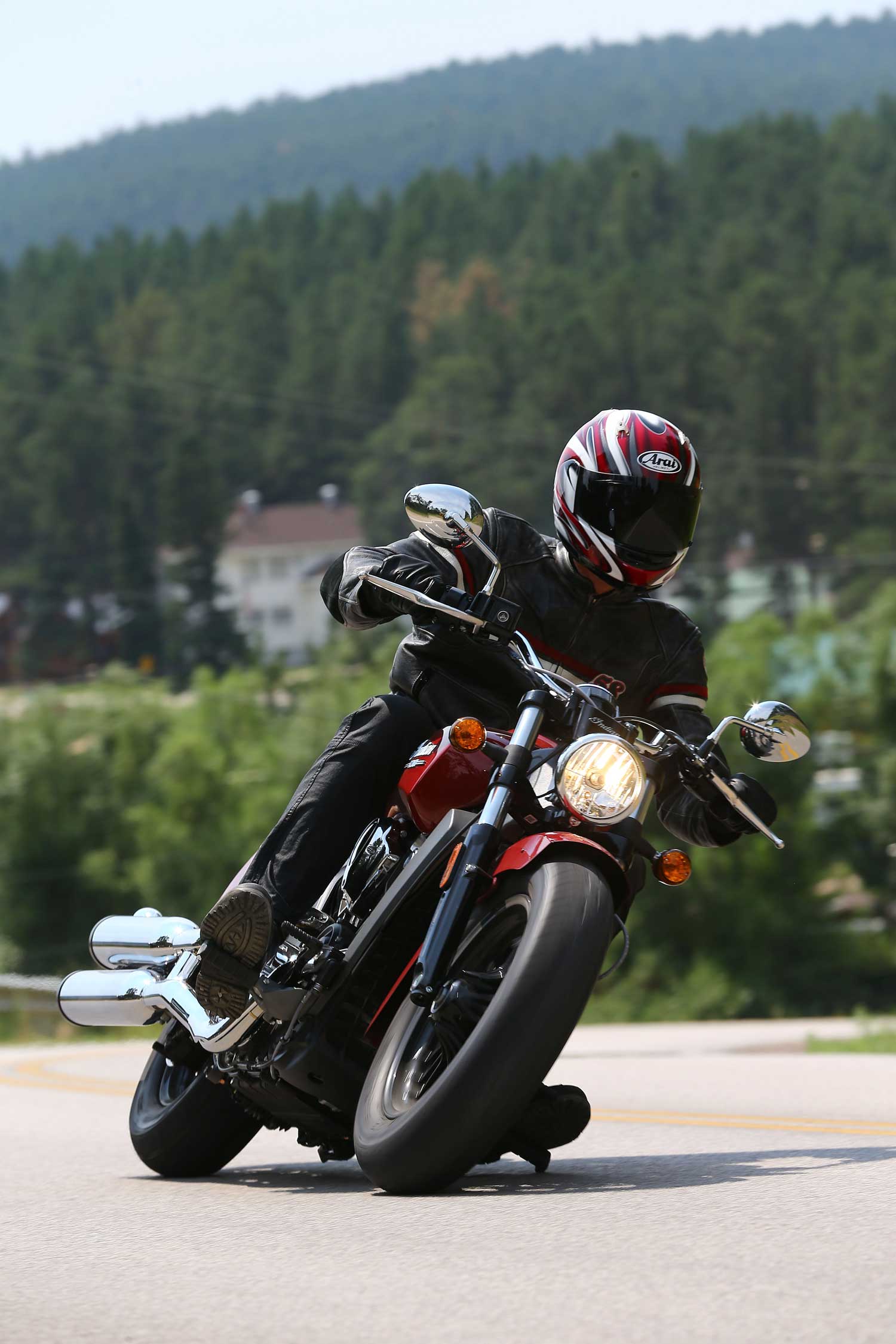 It’s a far cry from the Chief’s old-school air-cooled, pushrod-operated V-twin, which set its cylinders at a 49-degree angle because that was the closest that Indian’s engineers could get to the traditional 42 degrees. The liquid-cooled Scout has a wider, 60-degree cylinder angle, eight valves and DOHC operation, allowing better breathing for an injection system that is controlled by ride-by-wire throttle. There’s no attempt to add unnecessary cooling fins; instead the Scout’s engine cases are sculpted to show the shape of the components within.