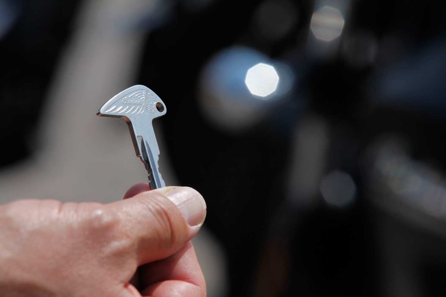 The Scout’s basic layout might be simple but there’s a definite feeling of quality about the bike. Finish seems excellent, in a choice of four colour schemes: matt or gloss black, silver or Indian’s trademark dark red. You don’t get the outrageous styling flourishes of the Chief, with its gigantic front fender and sculpted Indian headdress logo. Instead there’s a generally neat and restrained style about the Scout, though you do get a headdress-shaped ignition key that fits into the left side of the engine.