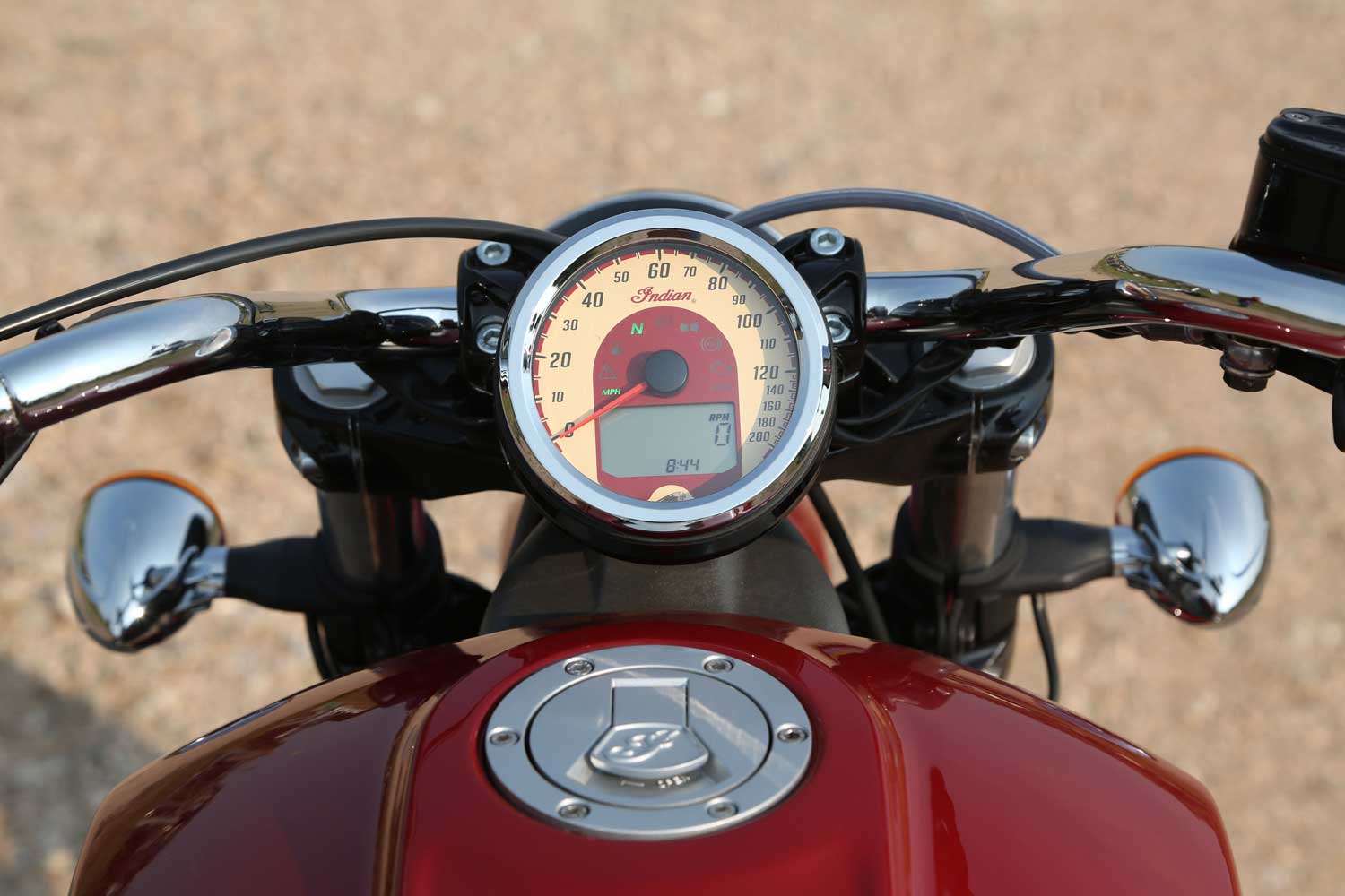 You don’t expect too much emphasis on practicality with a cruiser, even a relatively sporty one like this, but the Scout should be reasonably easy to live with. Its tank holds a moderate 12.5 litres; enough for a range of over 120 miles. There’s no fuel gauge in the fairly basic instrumentation, just a neat, white-faced analogue speedo with a small digital tacho and a few other displays set into its face.