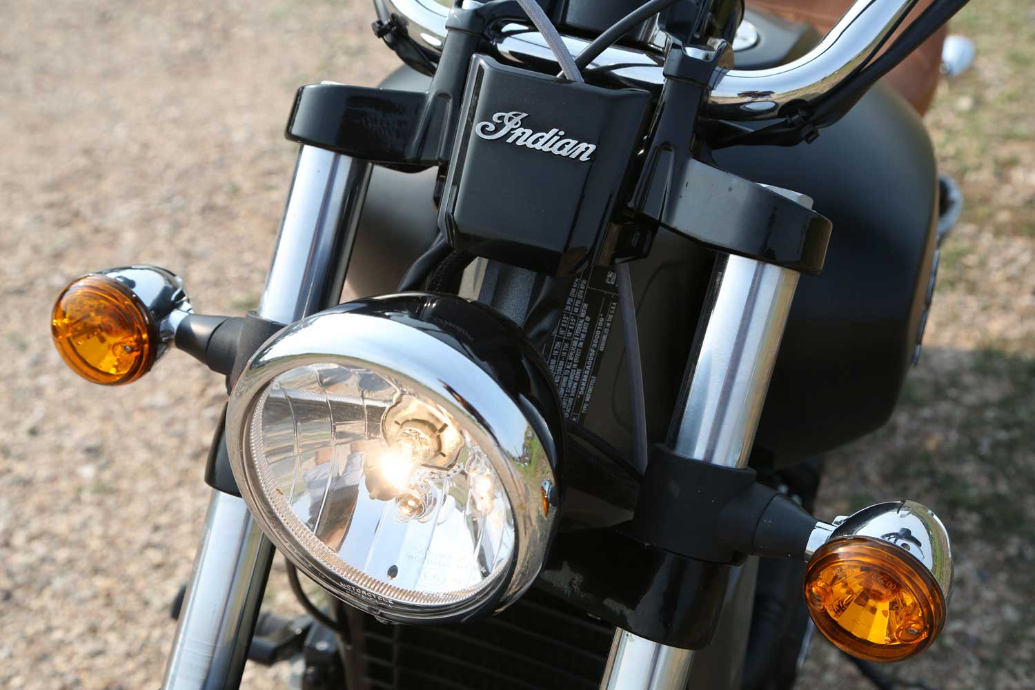 Wheels are a cast multi-spoke 16” design, and there’s just a single disc at each end, which will come with ABS when deliveries begin early next year. In typical cruiser fashion there’s not a lot of suspension travel; just 120mm up front and 76mm at the rear. That in turn allows a very low seat of just 673mm. Indian is aiming the bike at young, inexperienced and female riders, so regarded a low seat and easy manoeuvrability as vital.