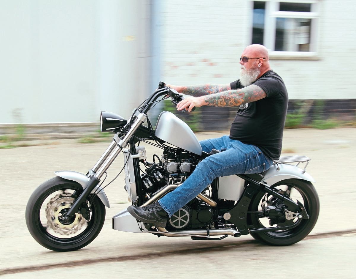 Engineering: Frame/rear suspension/battery box by Raw Steel Choppers, one-off exhausts by Wayne at JAC Exhausts 01159 635 556 www.jacexhausts.co.uk), radiator by Darren at Custom Made Rads (01773 713031), bike built by Kustom Choppers Ltd (01953 529150 or www.kustomchoppers.co.uk)