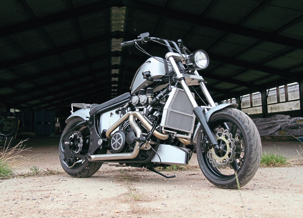 You see, while the venerable VMX1200 was available from 1984 right through to 2007, there’ve been very, few customs, real customs, built from them – a mere handful in fact. Yes, I know that there’ve been a lot (a lot!) built in a streetfighter-stylee, especially if Steve Taylor’s been anywhere near ‘em, and a fair number of (mainly conversion) trikes too, but when it comes to the kind of bikes that gets featured in this ‘ere publication there really aren’t that many at all.