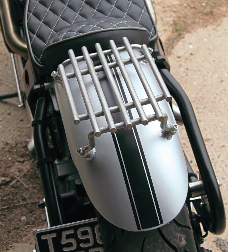 Finish: Silver/black stripes/matt lacquer by Kustom Choppers Limited, powder-coating by Champion Equipment (www.championequipment.co.uk), bright zinc plating by Advatech (www.advatechplating.co.uk)