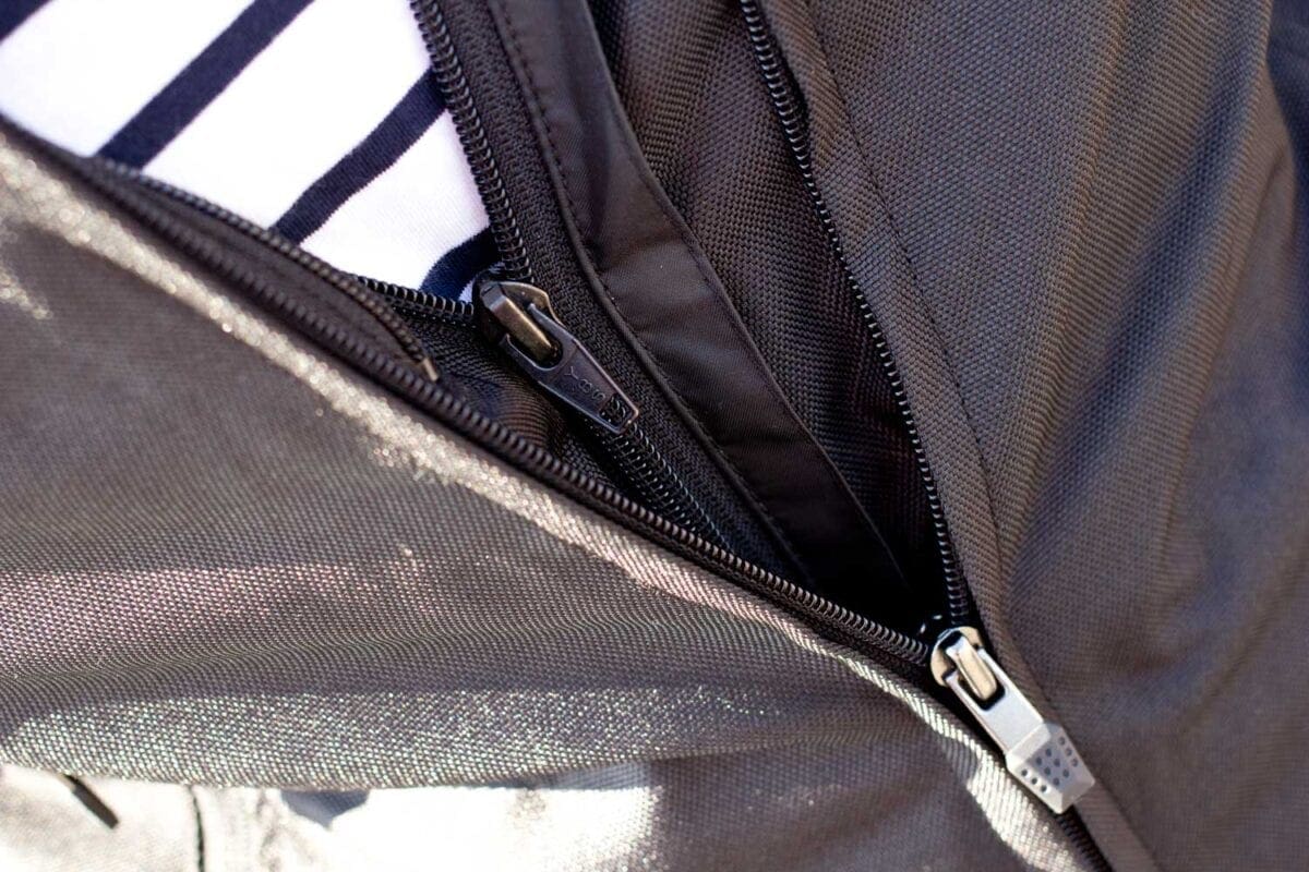Sliding the jacket on, it initially felt a lot tighter than my other textile jackets because of its slim line fit, however I got used to this the more I wore it and it has now become like a second skin now that it is bedded in. It has adjusters at the waist and arms, zip adjusters at the hips and a large stretch insert on the side so it’s easily made to fit perfectly.