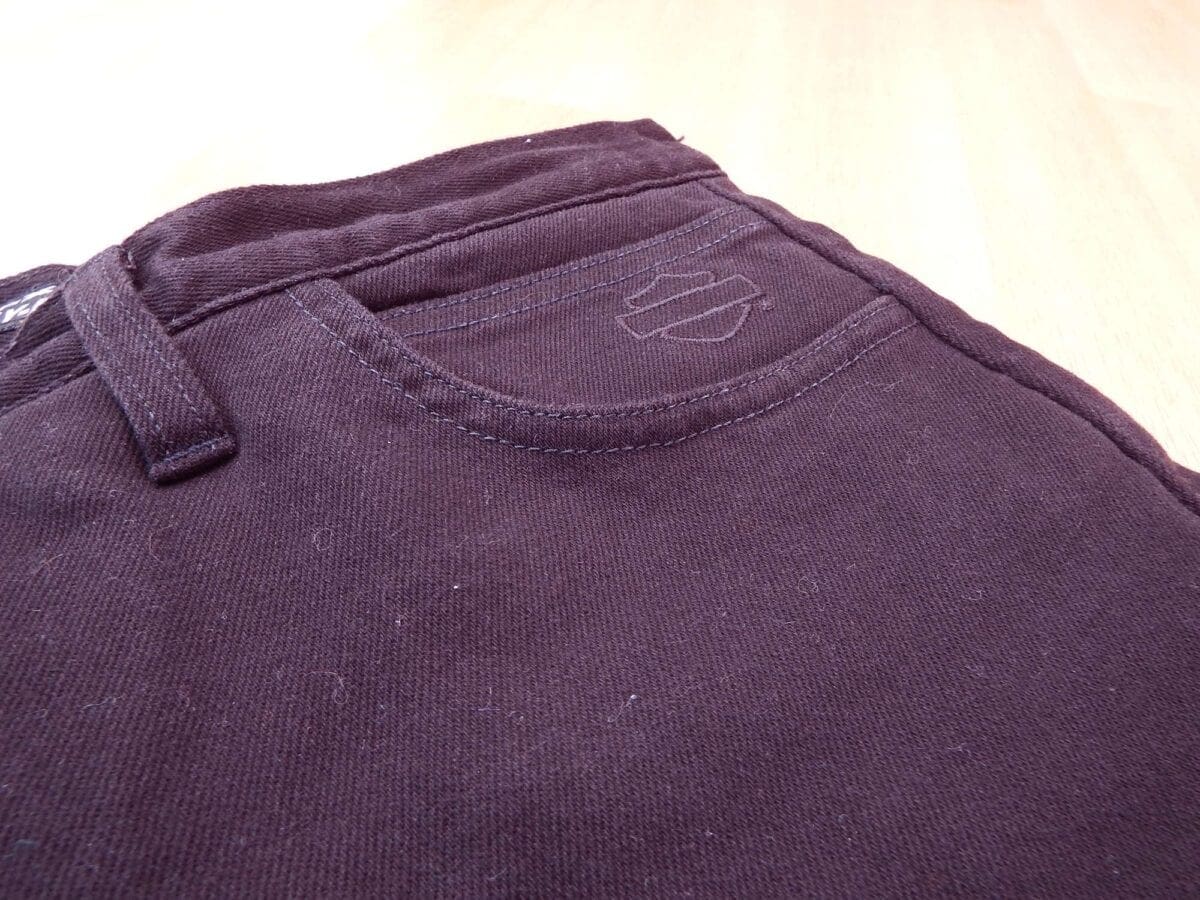 To look at, they look like regular jeans. Often with other riding jeans, there are seams at the top and on the bottom of the knee which holds the Kevlar lining in – however with these having the protective lining throughout it removes the need for the extra seams.