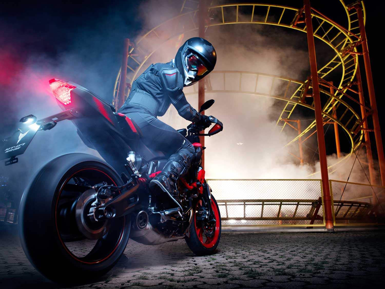 Inspired by the Dark Side of Japan and characterized by their strong linear torque and aggressive naked styling, the dynamic MT family is attracting a wide range of customers from diverse sectors of the biking world. In their debut year, Yamaha’s MT models havetotally reinvigorated the motorcycle market by opening up a whole new direction and lifestyle for thrill-seeking riders who are looking for something different.