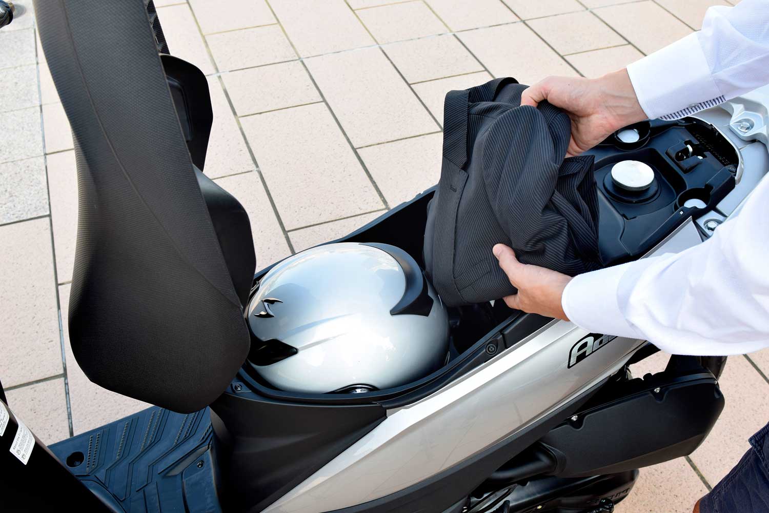 Utility box Stash your full-face helmet, rain gear and other items in the 20.6L utility compartment.