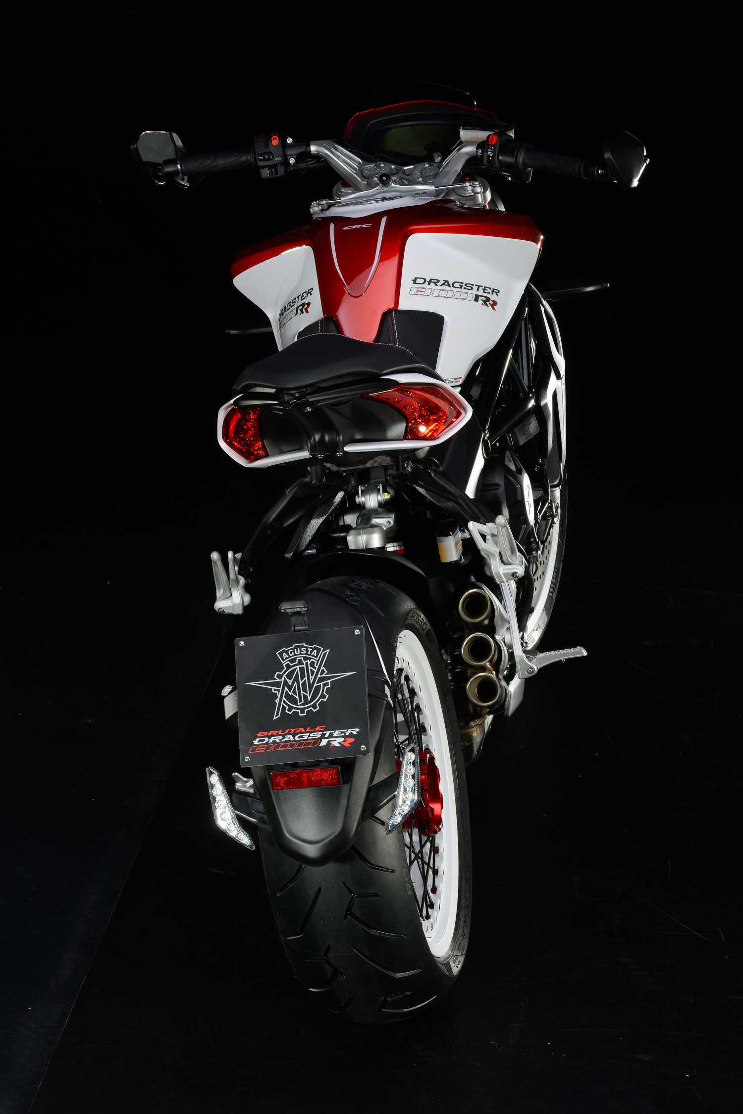 The RR badge is said to be reserved for the company’s best four-cylinder machines, but it’s now found its way onto the triple of the Brutale 800 Dragster RR. Capacity is the same as the current model at 798cc with a 79.0mm stroke and 54.3mm bore, but power is up a claimed 15bhp to 140bhp, at a higher 13,100 rpm (the ‘standard’ Dragster peaks at 11,600rpm). MV says that a redesigned air box and optimised, more efficient fuel system, as well as tweaks to the fuel injection (two injectors per cylinder now) result in linear power delivery at low revs, and explosive performance at high revs with “eye-watering” acceleration.