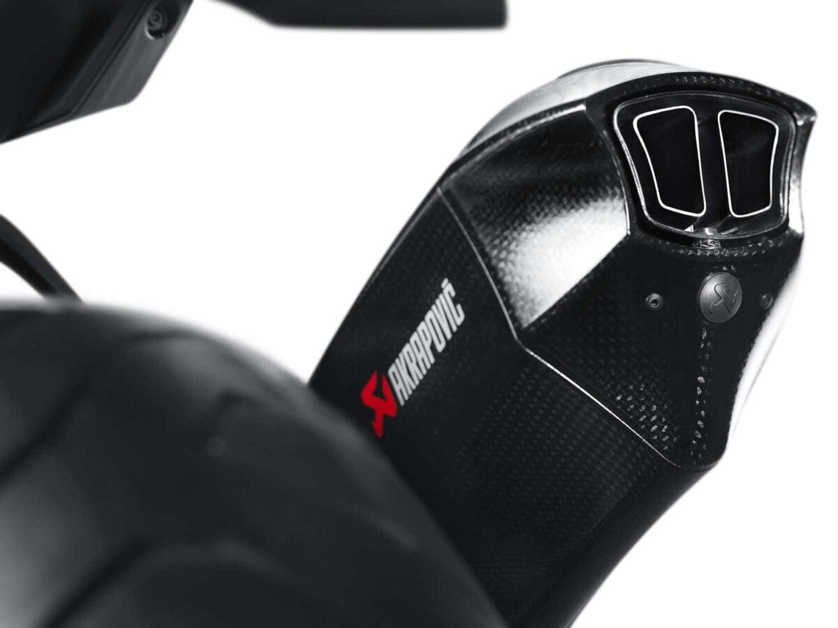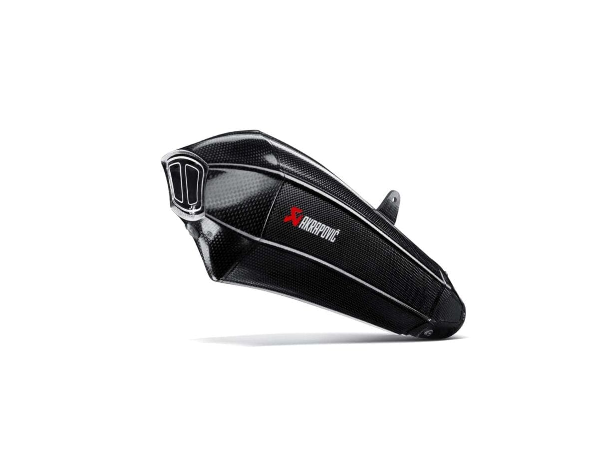 This new exhaust system has a distinctive new shape that follows the lines of the bike and is constructed with Akrapovic’s beautifully crafted titanium tubes, a carbon-fiber outer sleeve and end cap, and a completely new carbon-fiber bracket, making the system lightweight and adding to the overall performance of the bike. The distinctive shape is initially only available for the Kawasaki Ninja H2, but will also be available for other bikes from different brands soon.