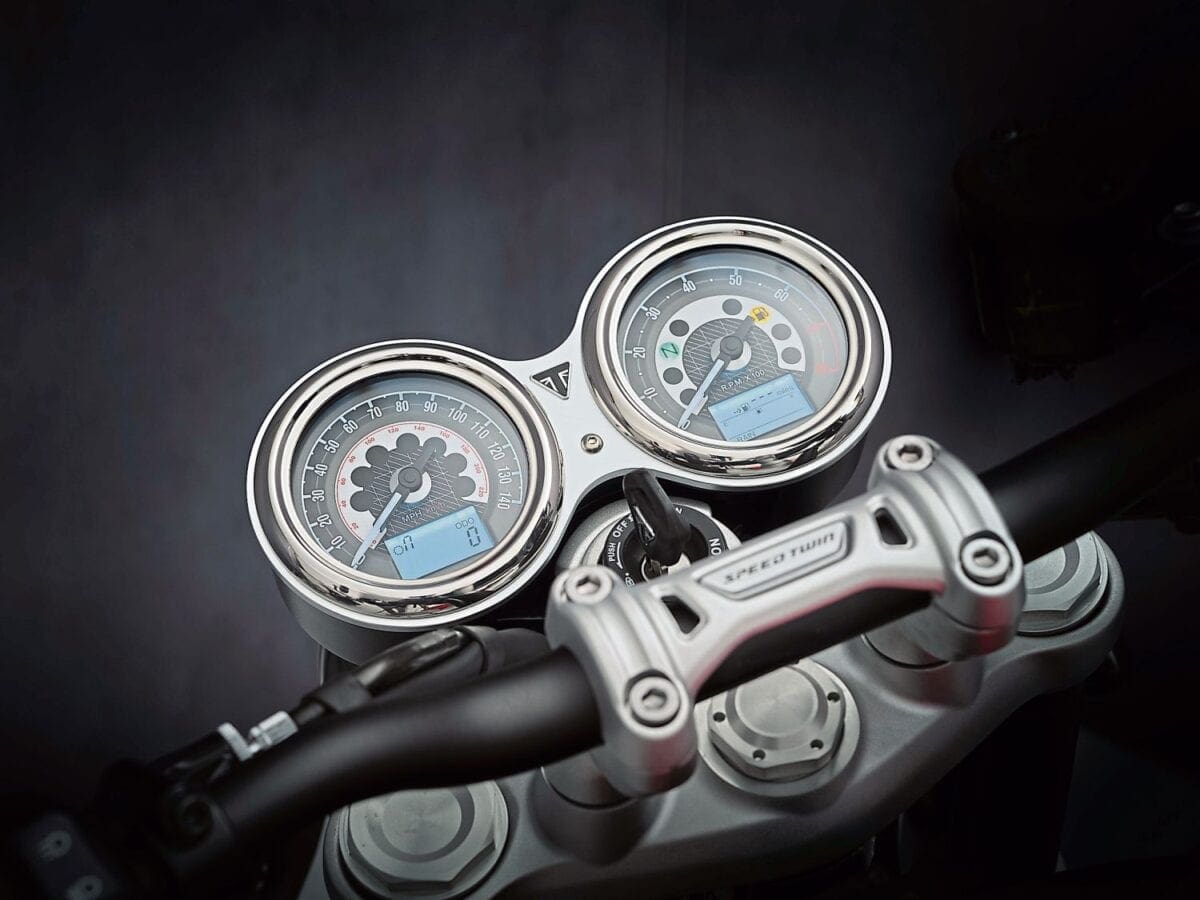 The beating heart of the Speed Twin is a 1200cc parallel twin-cylinder engine. Visually it all looks much the same as the outgoing model – but underneath the surface there’s plenty going on to help create a slightly higher-revving, marginally more responsive and powerful engine.