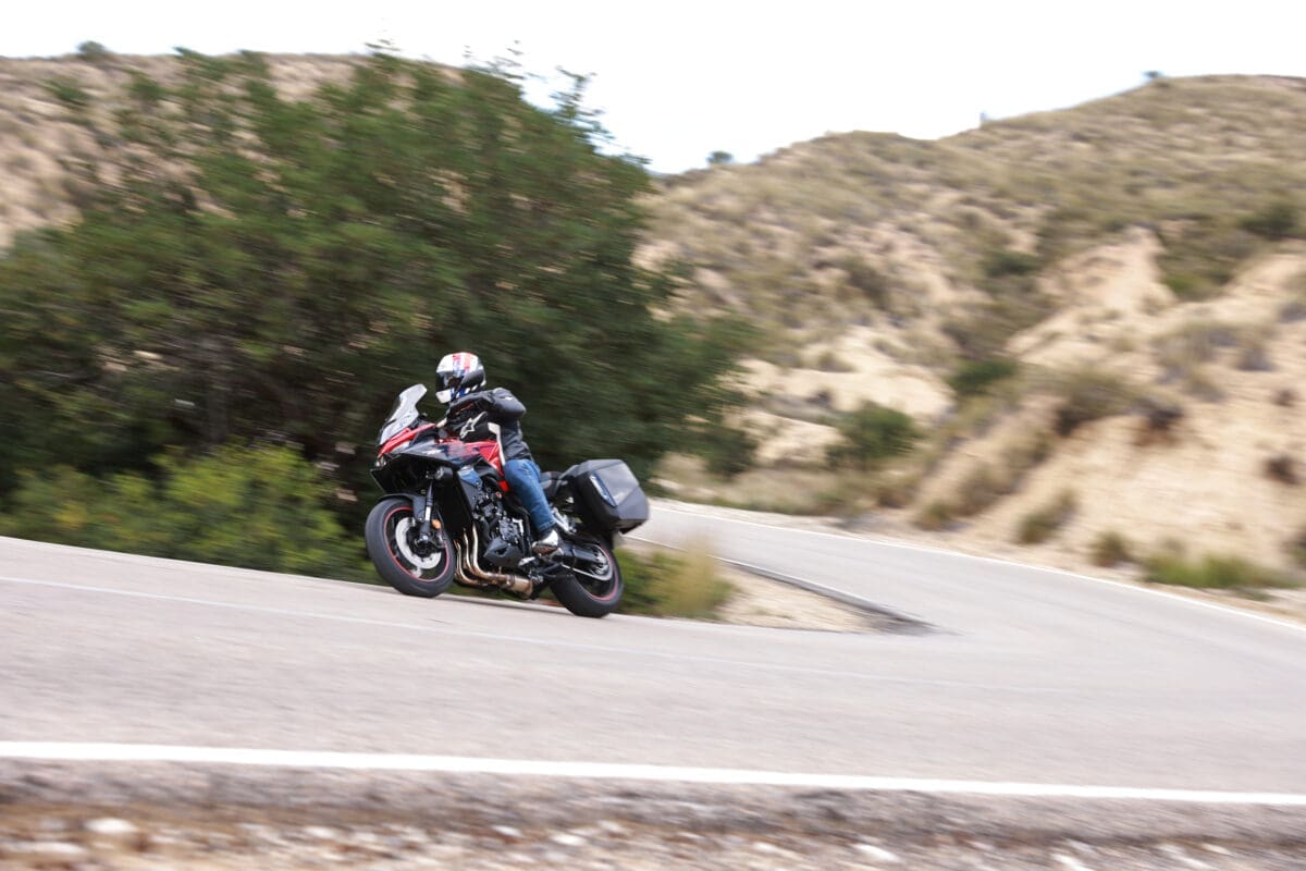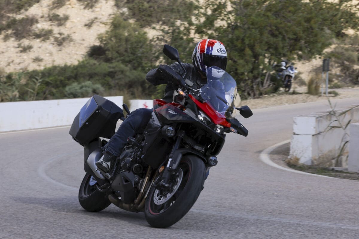 Knowing that the Showa system is collecting data from all over the bike, including suspension stroke, road speed, the ECU and a six-axis IMU, and using all that information to keep the settings optimal in “real time” every 0.015 seconds, is almost inconceivable but without a stopwatch to hand it felt believable. All I needed to know was that in Sport mode the suspension was performing in a way to offer that sports bike feeling with the front end feeling firmer under harder braking and the rear doing its bit by not squatting excessively when firing the GT out of corners when climbing quickly through the revs before grabbing the next gear.