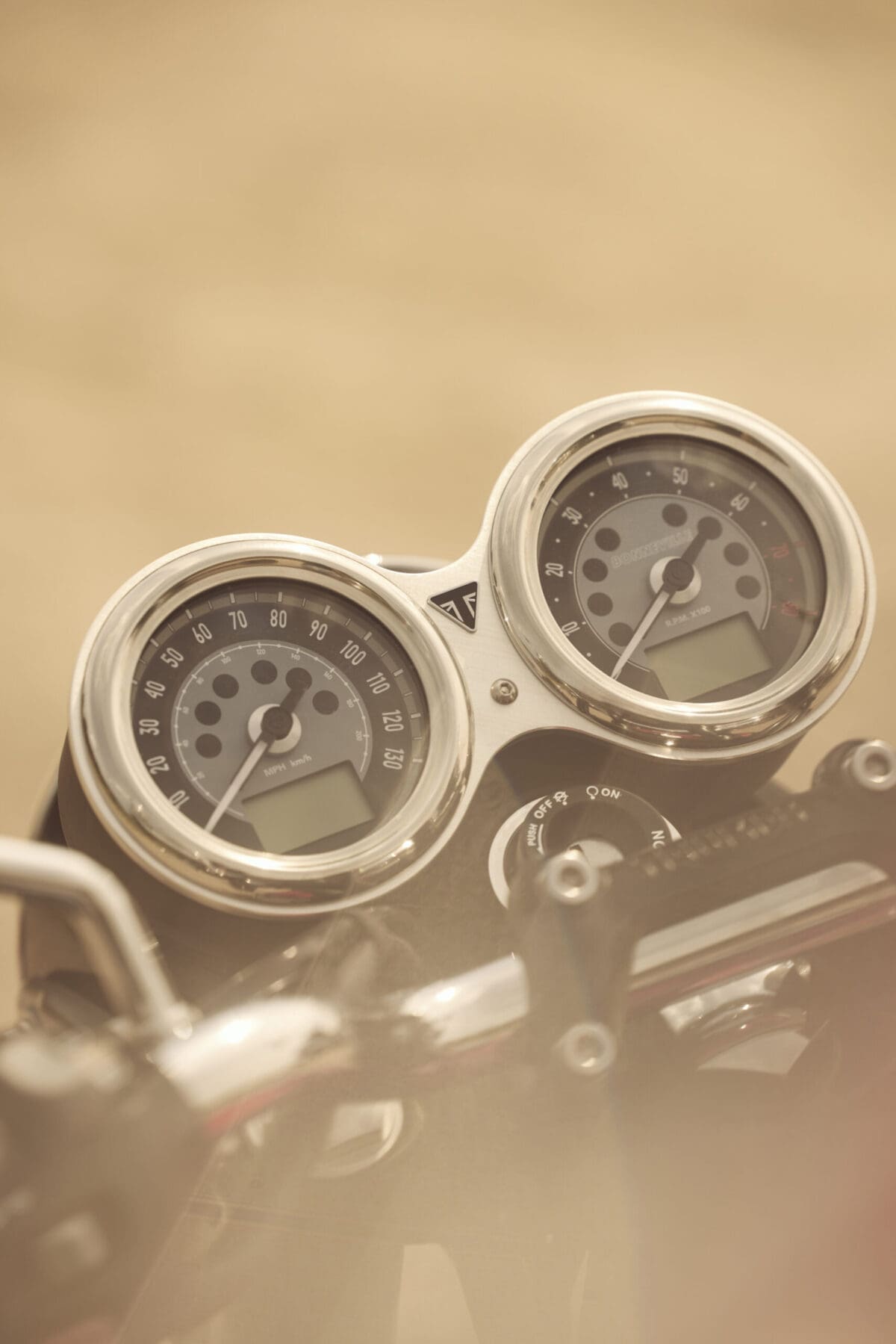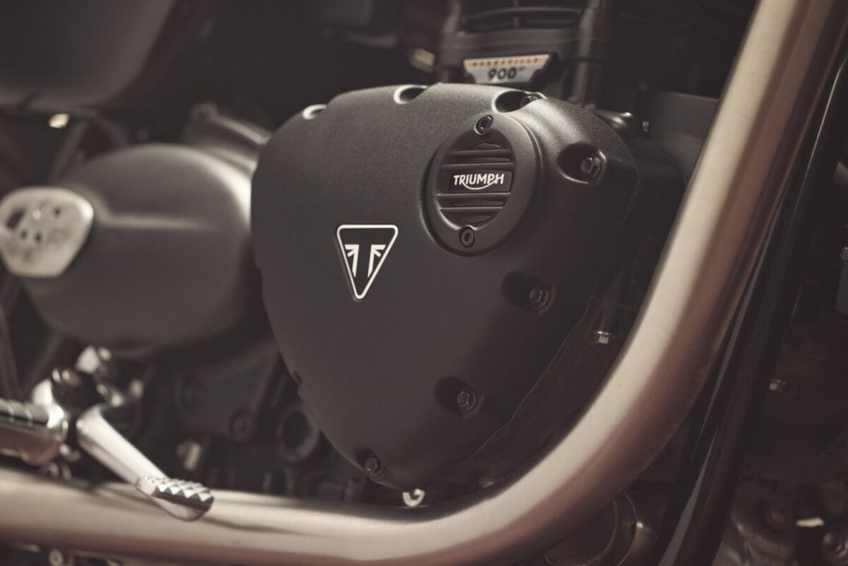 It’s easy to see why this model has proven such a hit for the British firm, not least of all because of its affable pricing – £9,695. Aesthetically, Triumph has done an amazing job of blurring traditional styling cues with contemporary necessities, packaging the bike so neatly that after a good 10-minutes of checking it over, you’d still be left with areas to feast on. From the twin-clock setup to the chrome clad surrounding on the striking single headlight, you can’t help but have your eyes drawn, with one of the neatest features being the full-length exhaust systems that straddle either side of the 900cc parallel twin motor. What you’re unlikely to pick up on is the fact there’s a sizeable catalytic converter stashed away beneath the engine, or the that the mid-sections of the system are actually just a cover, making one assume that the pipe flows relentlessly from the headers to the silencers… but that’s not the case. In a cracking case of smoke and mirrors, while ticking the obligation for kitten-friendly emissions legislations, the real routing is out of sight and allowing of your eyes to deceive you. There are several such ruses on the bike, with another bluff being the carb-styled covers that disguise the single fuel injector body that lies within. And then there’s the radiator that’s designed to look like an oil cooler. And so it goes on, to the extent that you’d never know what it’s like to actually ride the bike if I were to keep listing its many trinkets.