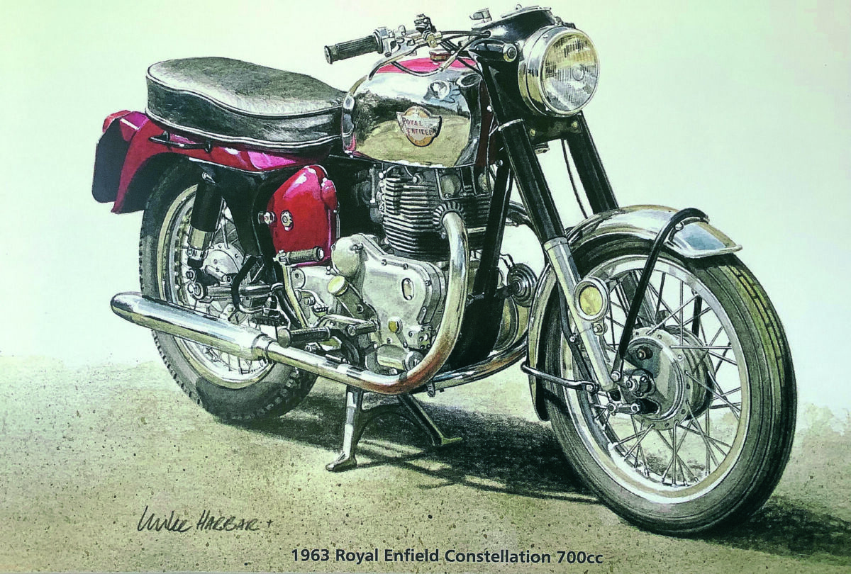 There was one machine, though, which had been on Andy’s stock lists for a while, and which we included almost as an afterthought, to do ‘if we had time’. It being a 1963 Royal Enfield Constellation, all 693cc of it – which for a brief time (after Square Four production ended in 1959) made it the biggest production motorcycle on sale in the UK. Indeed, this actual machine even features in this year’s ‘Tiernan calendar’, sold in aid of Air Ambulance, where it is superbly illustrated by Mike Harbar.