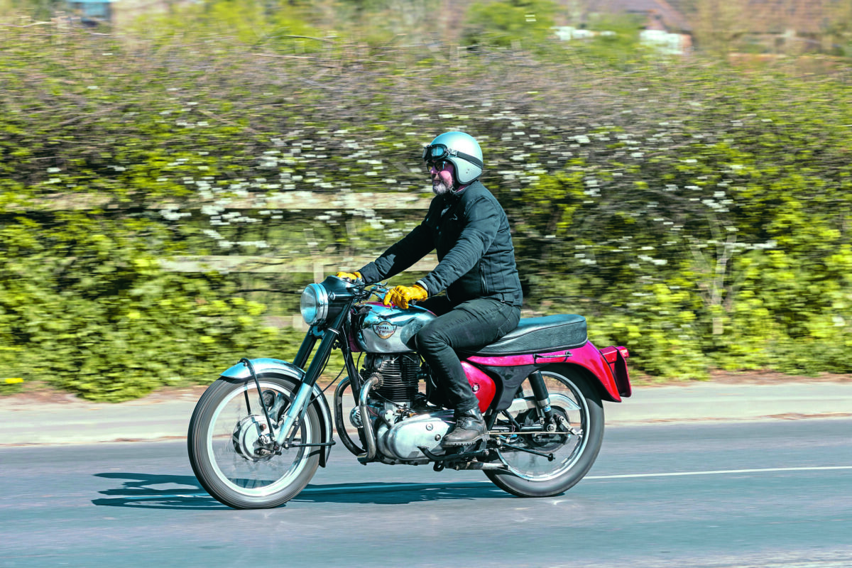 Similar to my settee, the aged Enfield looks a bit like it’s seen better days, too, but looking down from the saddle, despite being able to see the unfortunate ding to the petrol tank, I liked the way the once-bright metallic red paint had faded, mellowed and became a bit weather-beaten, while the sweep of the handlebars just suited my wrists nicely.