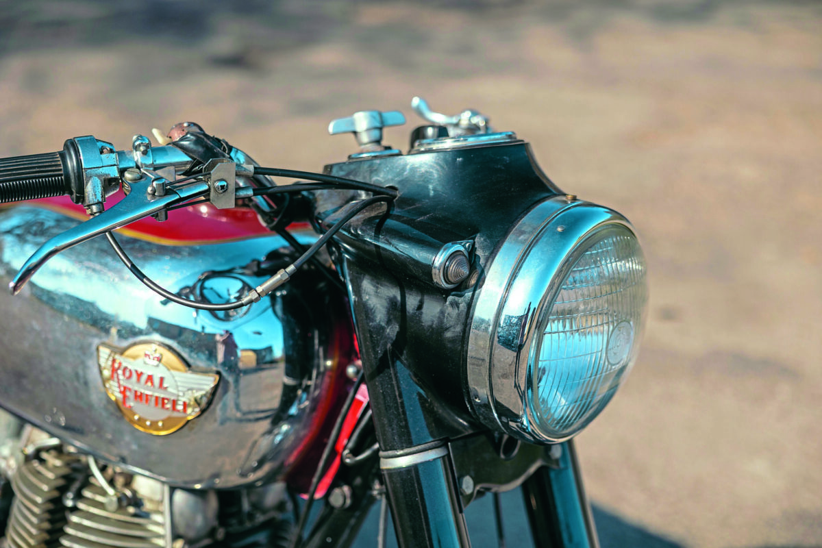 Closer inspection of our subject machine reveals that it does indeed have a steering damper, has coil ignition (I know, as I forgot to switch it on at one point, which resulted in getting rather hot and bothered; me that is, the bike just did nothing…) while looking at the engine number, it also has ‘SC’ stamped on it – for sidecar, one might be safe to assume? Perhaps that accounts for its altogether eager-to-please demeanour, while one wonders if in this configuration it would produce the 51bhp Royal Enfield claimed; incidentally, the new Interceptor 650 and friends make a claimed 47bhp, so the ‘old ones’ have, in theory, more giddy-up than a brand-new machine that looks similar. Whether in reality that would be so, is a moot point.