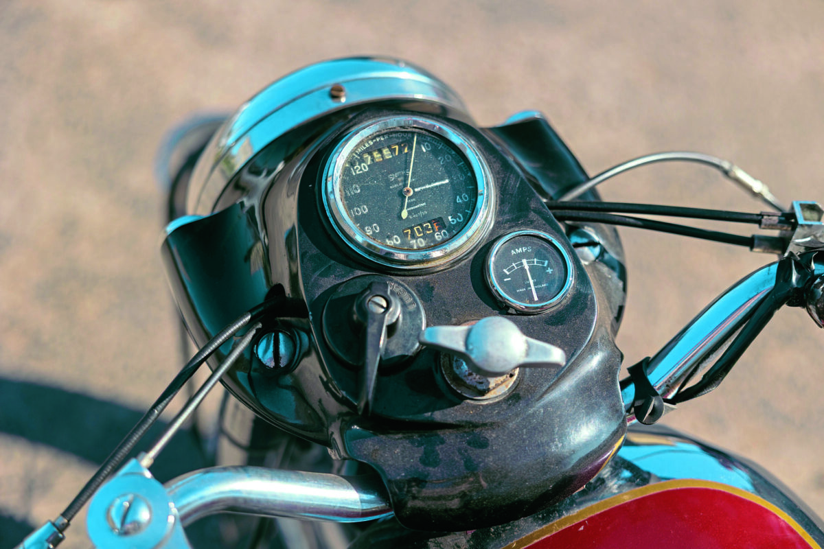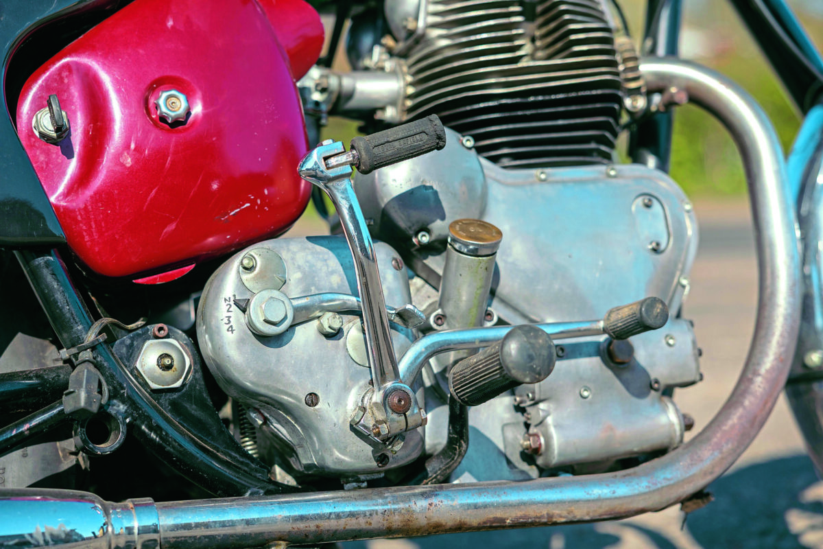 In the early days, the letter ran from January 1, but the impracticalities of a rush on new vehicles (everyone buying something wanted a ‘new year letter’ so the neighbours knew they ‘doing alright…’) on New Year’s Day, meant it switched to August 1 from 1967, meaning an E only ran January 1 to July 31, 1967. This Enfield, then, was registered towards the end of the year, its new owner not wanting to hold out a few months so everyone knew he’d a new vehicle – which perhaps sums up a Royal Enfield buyer at the time, as in, not too bothered about what others thought, seeing as the big RE was overshadowed, certainly in terms of glamour, by the likes of Triumph’s Bonneville and BSA’s new A65, while in glamour and capacity by Norton’s 745cc Atlas, which had knocked the Enfield off its perch as Britain’s biggest production model.