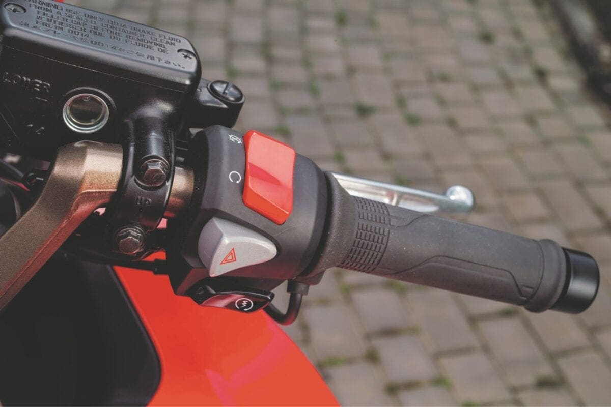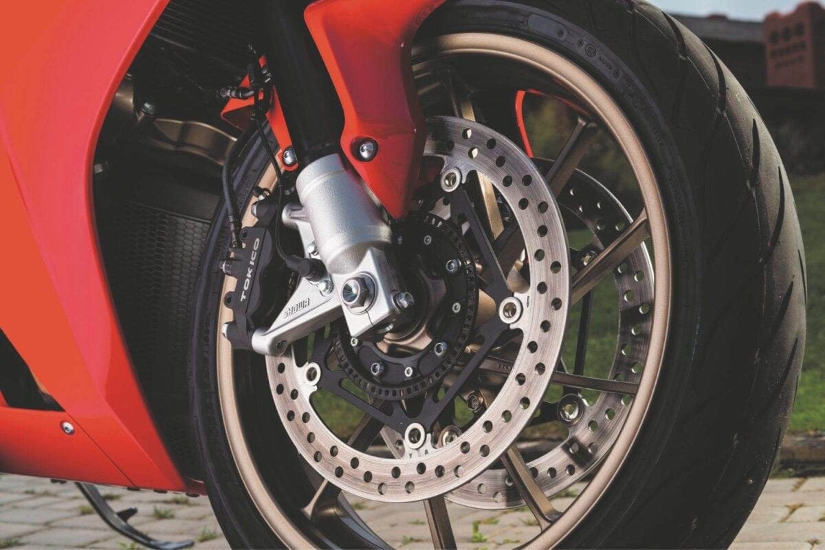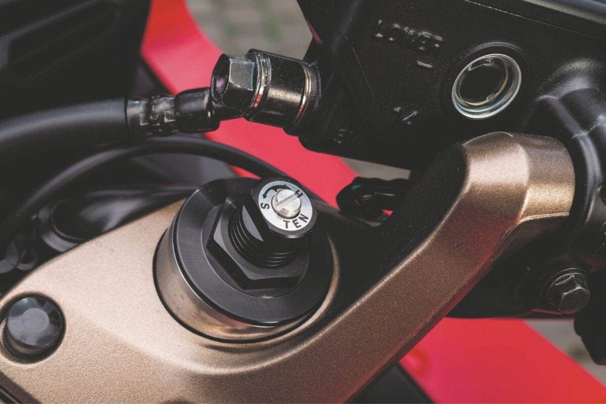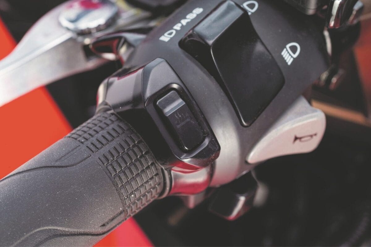 If you are a little ham-fisted on the throttle, the switchable traction control keeps any slide in check. The system retards the ignition and reduces the fuel frequency until the bike’s settled again: It’s a nice, smooth set-up that never detracts from the ride.