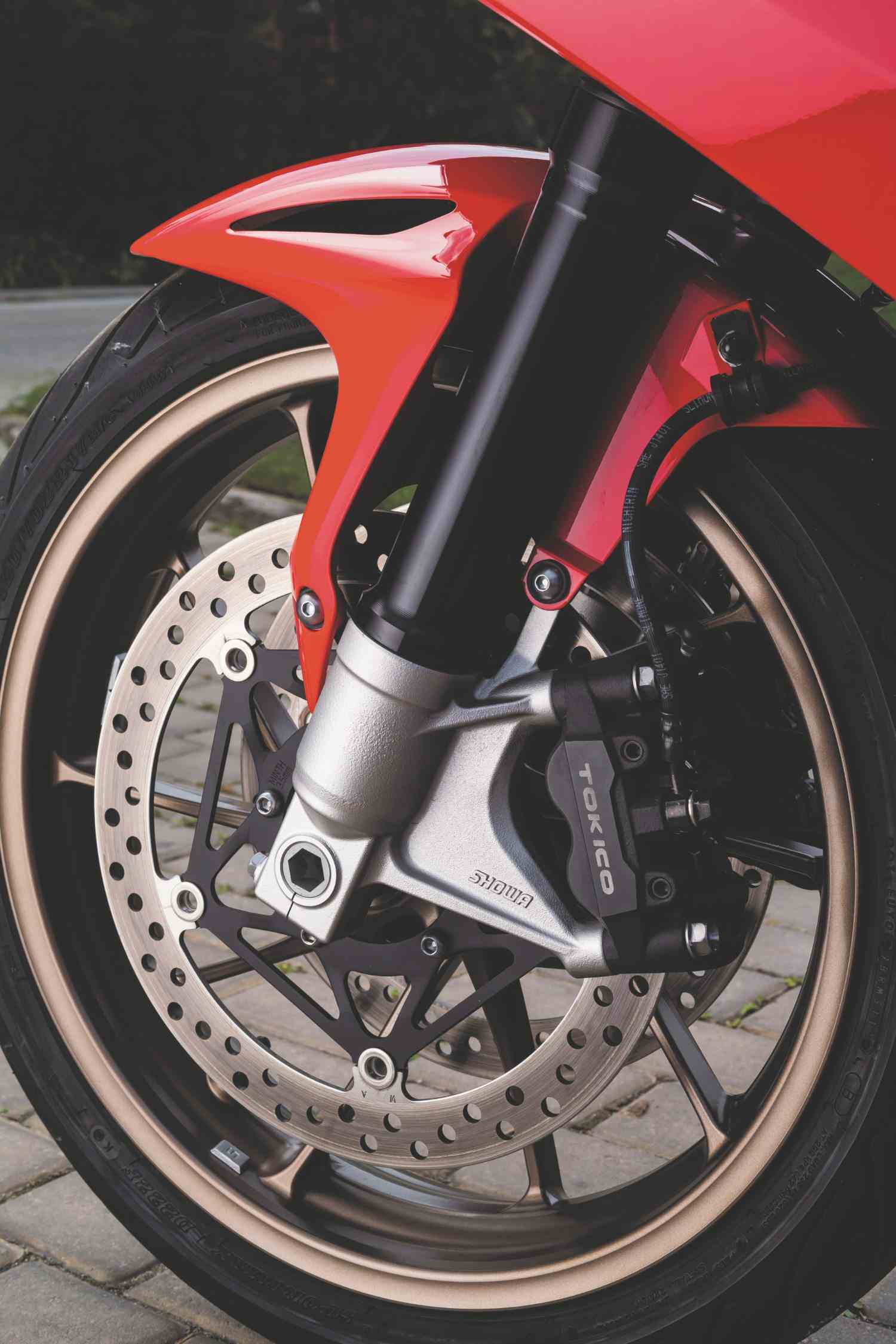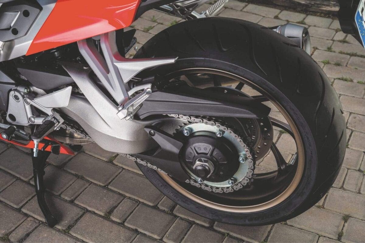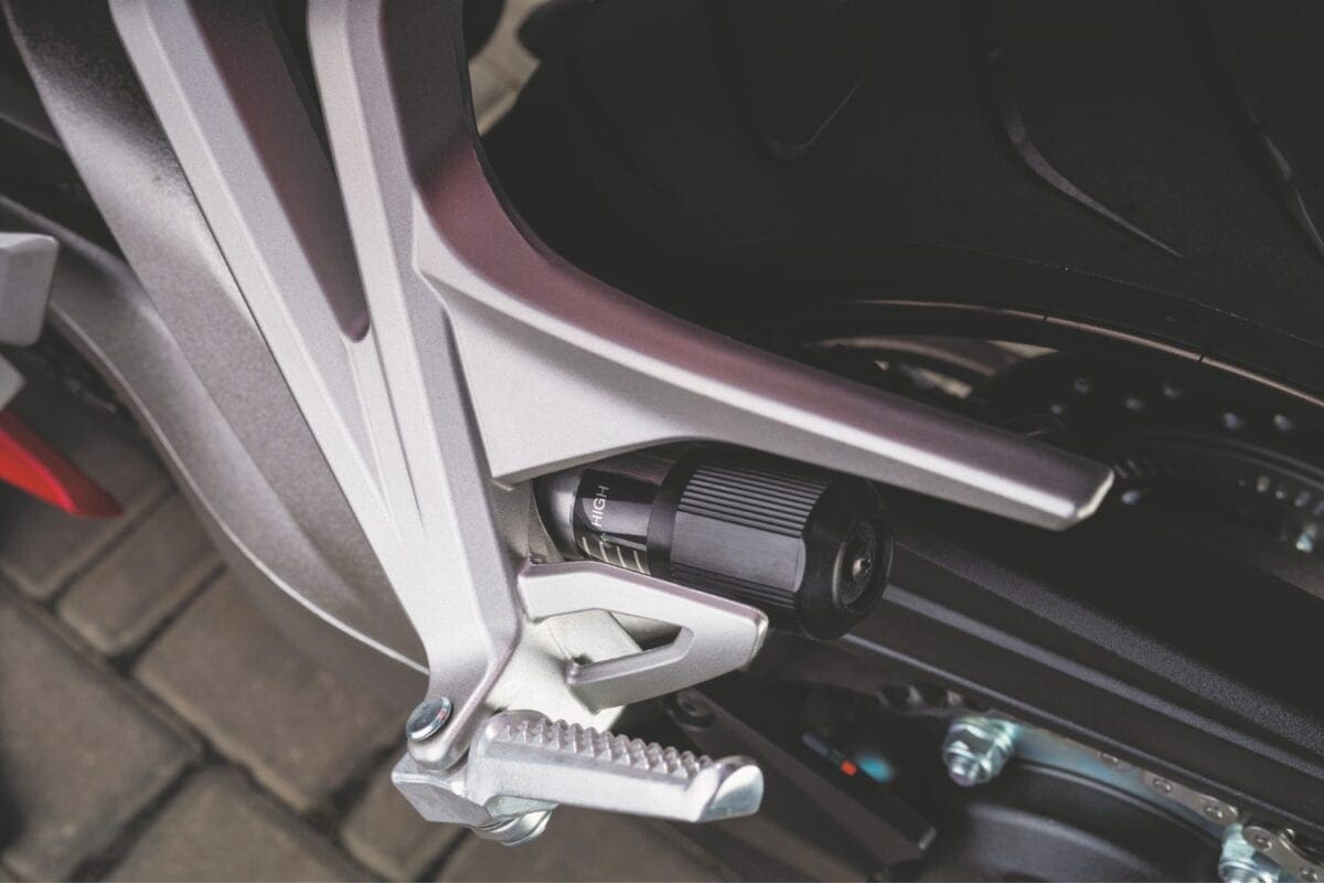 If you are a little ham-fisted on the throttle, the switchable traction control keeps any slide in check. The system retards the ignition and reduces the fuel frequency until the bike’s settled again: It’s a nice, smooth set-up that never detracts from the ride.