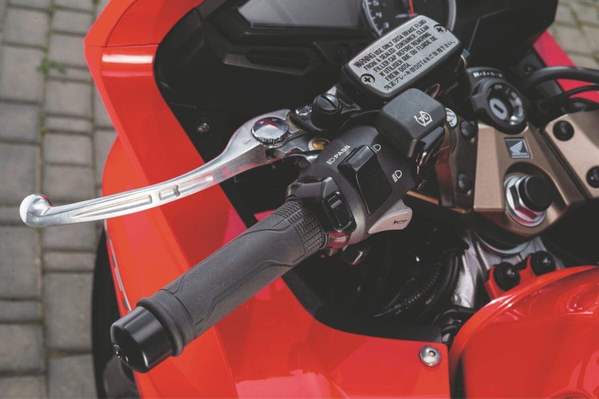 The models we tested were fitted with Honda’s optional quickshifter – a first for the company on a production bike – which allows you keep the throttle relentlessly pinned as you hook the next gear seamlessly. The system worked a treat, although I noted it to be a little sensitive to the touch, resulting twice in culls to the ignition without any physical gear change. But that’s more likely my fault for preloading the shifter. You’re on your own coming down the box, but the shifts remained smooth, at all times displayed on the dash’s gear indicator.