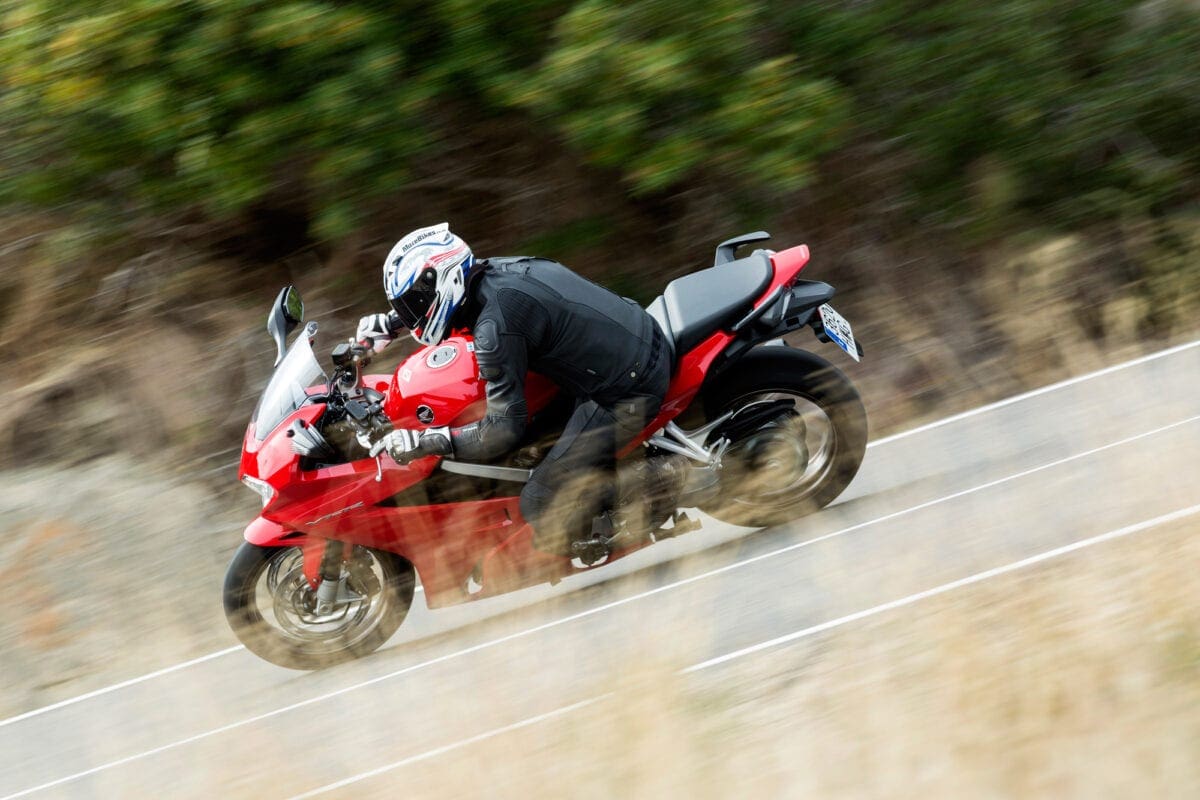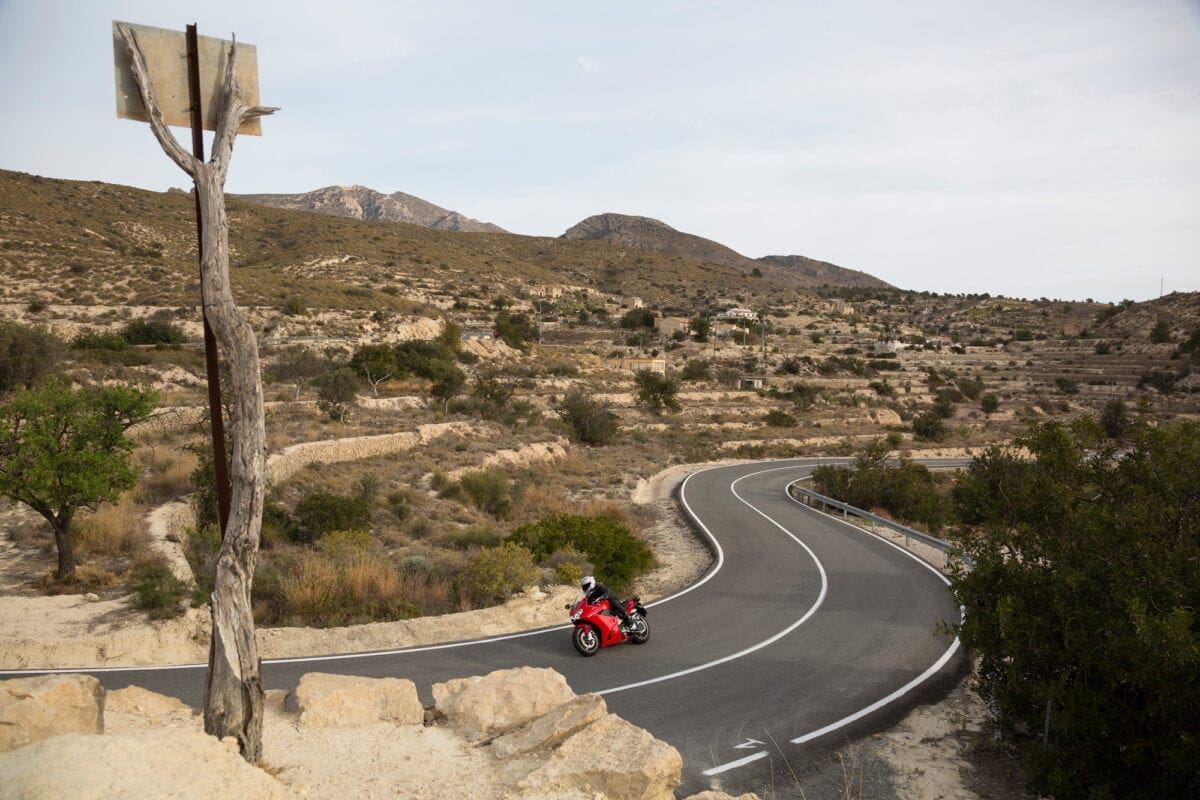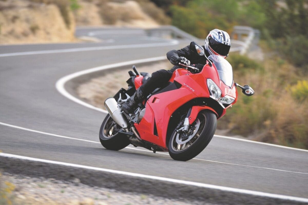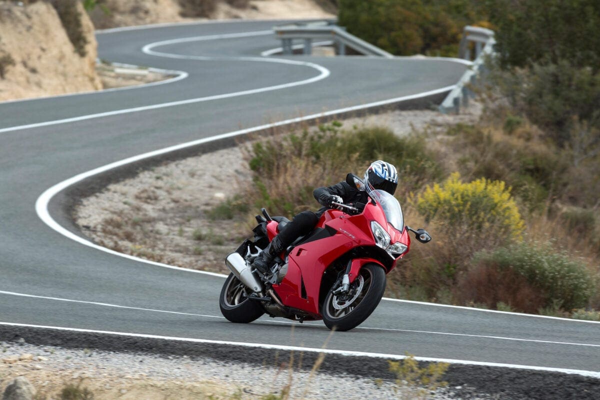 Our test ride’s photoshoot took place on a tiringly twisty route near Benidorm: A lot of the corners tightened beyond the norm on exit, which proved no real challenge for the VFR, as it doubled back on itself to oblige an apex. Its agility was worthily noted and so too was its commendable level of feedback. This is one of those bikes that comes alive with an injection of rider input, yet still proved perfectly well mannered when the pace slowed down in town.