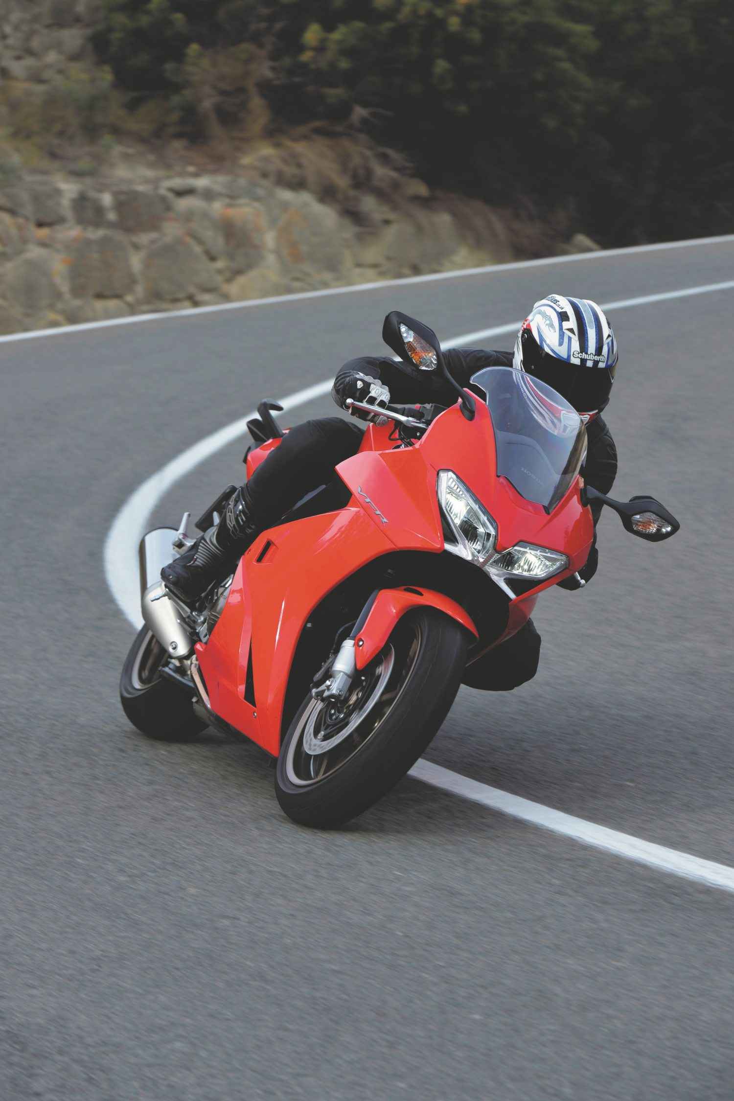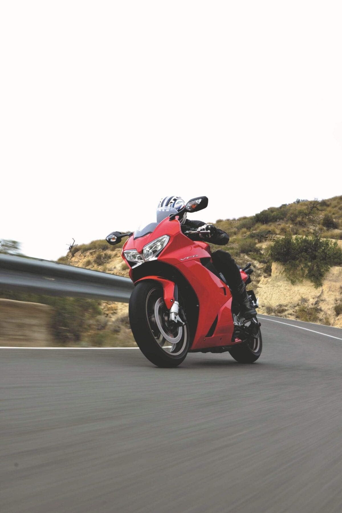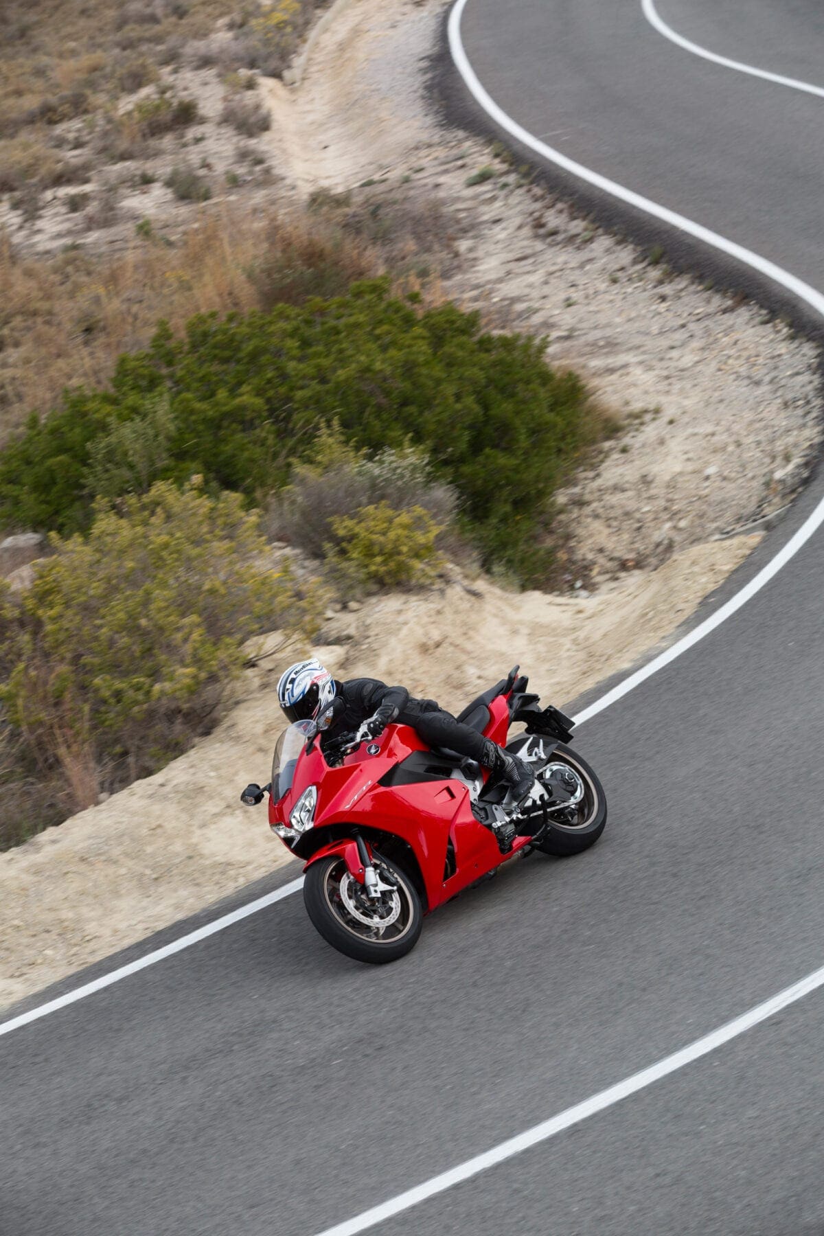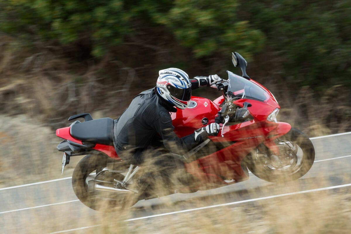 Our test ride’s photoshoot took place on a tiringly twisty route near Benidorm: A lot of the corners tightened beyond the norm on exit, which proved no real challenge for the VFR, as it doubled back on itself to oblige an apex. Its agility was worthily noted and so too was its commendable level of feedback. This is one of those bikes that comes alive with an injection of rider input, yet still proved perfectly well mannered when the pace slowed down in town.