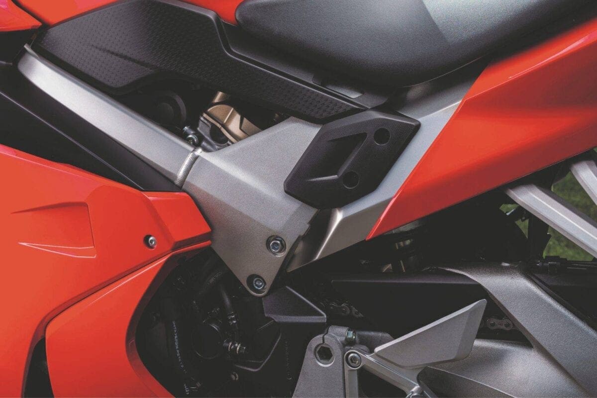 The VFR’s motor is fundamentally unchanged. However, it’s been refined for an increase in low-to-mid-range performance, with a particular focus on reducing the V4’s VTEC snatchiness. The latter’s been improved via a combination of changes to the exhaust design and length, as well as through alterations to the fuel mapping and fuel volume. The difference