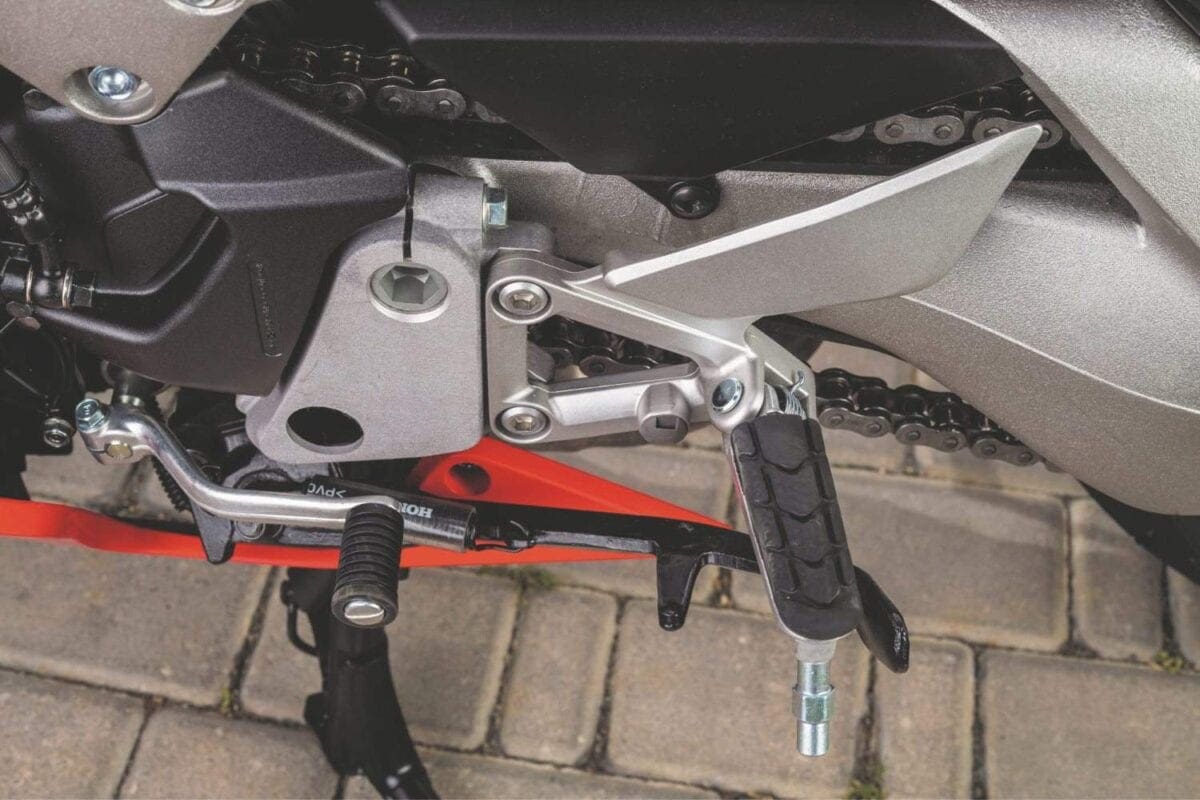 As you’d expect, the hydraulic clutch also achieved top marks and the same can be said for the initial grunt of the motor. To gain more torque, the valve timing and duration has been worked on, and the end result is strong power from as low as 2000rpm. The bike can pull most gears from low down, but it really comes alive after 3000rpm. At slow speeds, the motor’s well behaved and easy to manage in a town environment.
