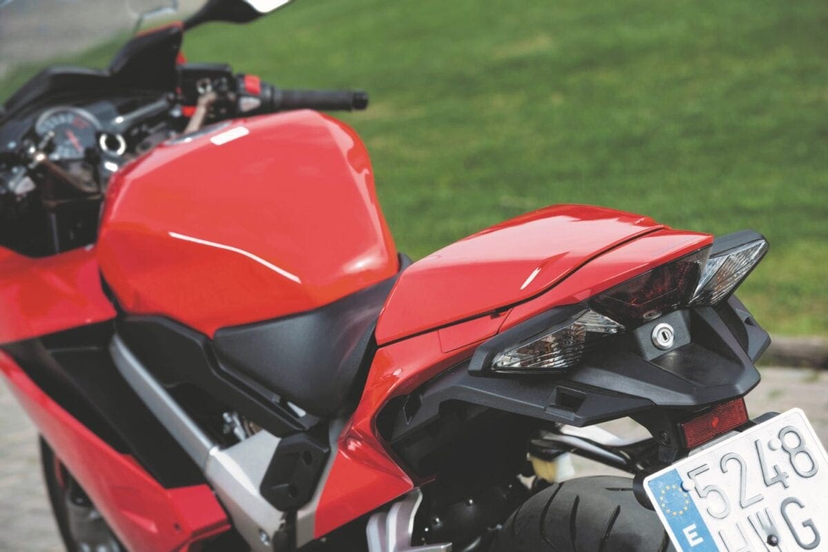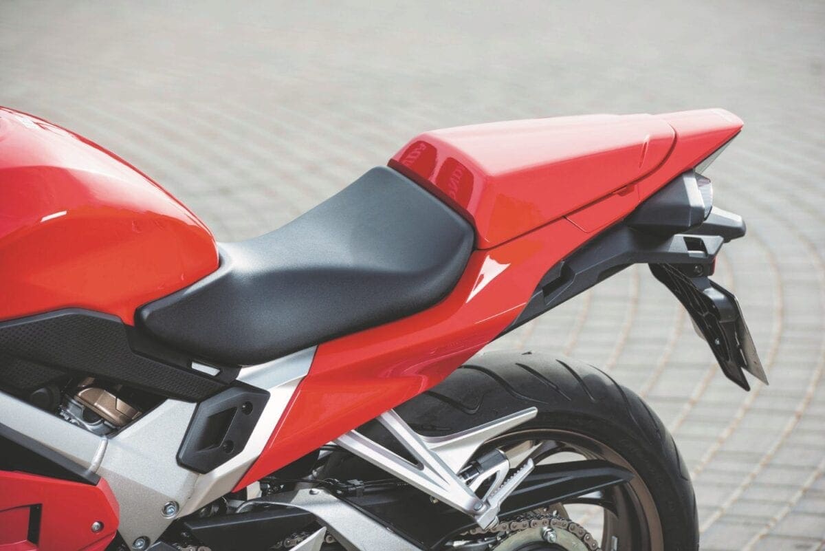 But perhaps the biggest change to the aesthetics is the loss of the under-seat exhaust system. The latest VFR opts for a simple side-mounted can, which has saved a total of 5kg. Similarly, a replacement aluminium subframe has relieved an additional 2kg from the rear of the bike, enhancing the weight distribution in the process. Other significant changes include a new dash, new forks, the addition of traction control and a height adjustable rider’s seat – 789mm to 809mm.