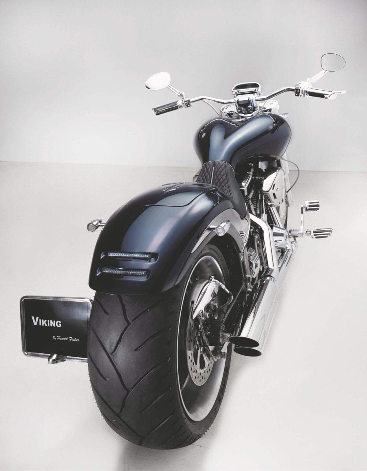 The result is a bike that retains a classic cruiser look sculptured into a dynamic, flowing design. In particular the tank, seat and rear fender blend together to create a seamless effect. Fisker believes this to be unique in custom motorcycles.