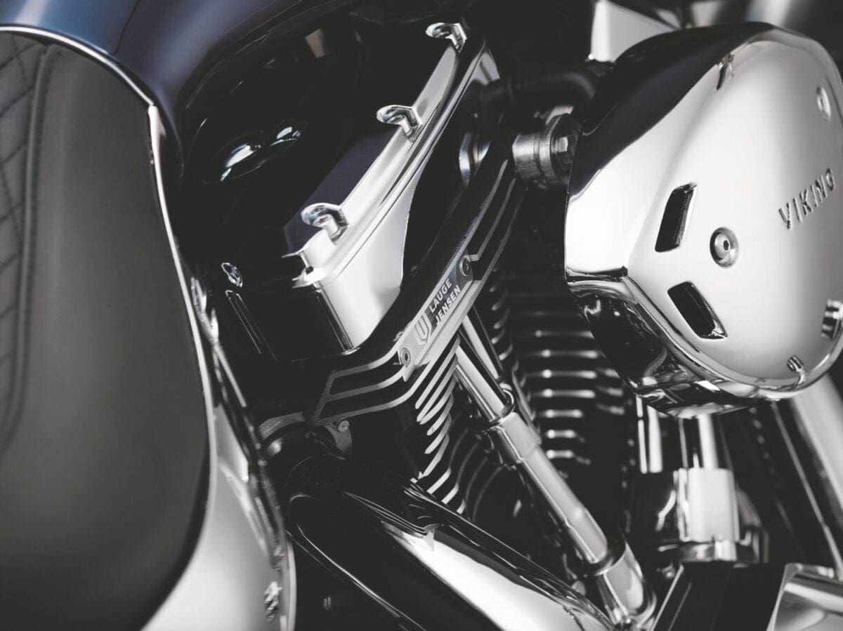The Viking Concept is powered by a 45-degree V-twin producing 100hp, making the bike capable of more than 130mph. Yet it’s the first motorcycle of its type to comply with new, much more stringent Euro IV emissions regulations that come into effect in 2016.