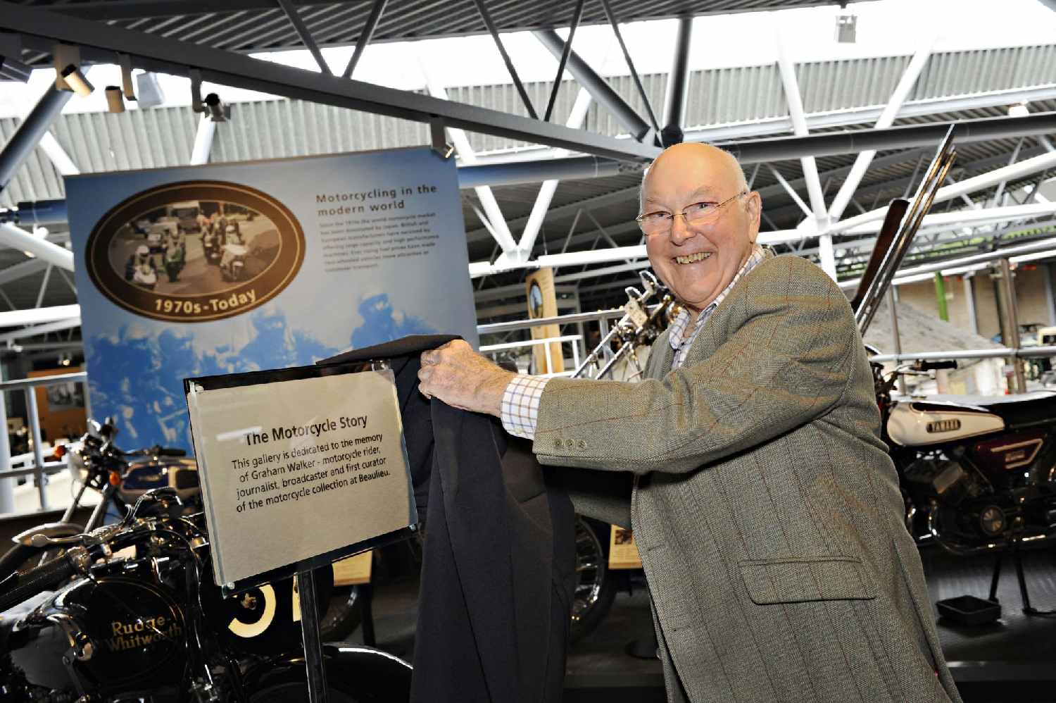 Following a ribbon cutting, motor racing commentator, Murray Walker, was invited to unveil a plaque marking his father, Graham Walker’s role as the first curator of the motorcycle collection at Beaulieu, beside a display case celebrating his life and achievements. Unveiling the Motorcycling Icons Wall of Fame were two of the icons, 11 times British Trials Champion, Sammy Miller and Britain’s most successful female motorcycle trials rider, Becky Cook.