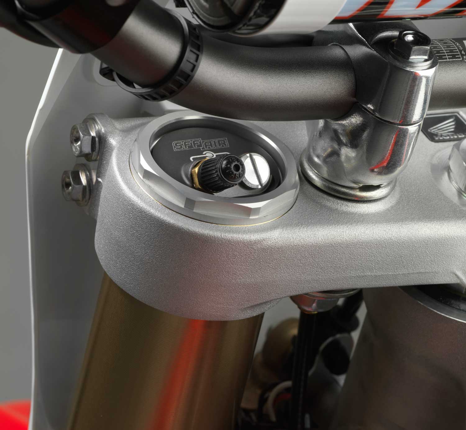 The SFF-AIR-TAC front suspension has been developed for the CRF250R by Showa to unlock the frame’s extra performance potential and shaves 1.3kg weight