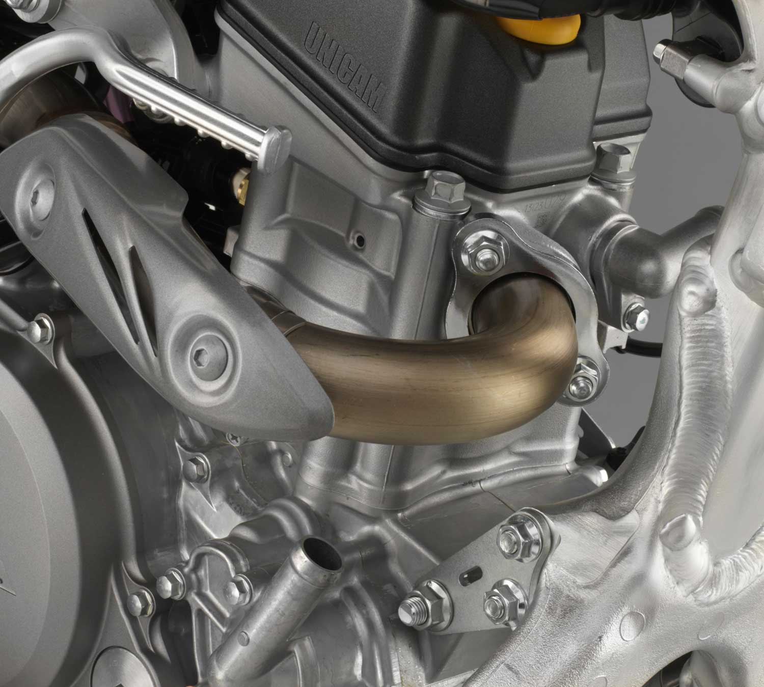 Improved throttle response throughout the rev-range with crisper top-end and sharper snap off the bottom and through the middle have been achieved through use of redesigned mufflers and internals; the right inner diameter grows from 22 to 23.8mm, the left from 23.4 to 26.6mm.