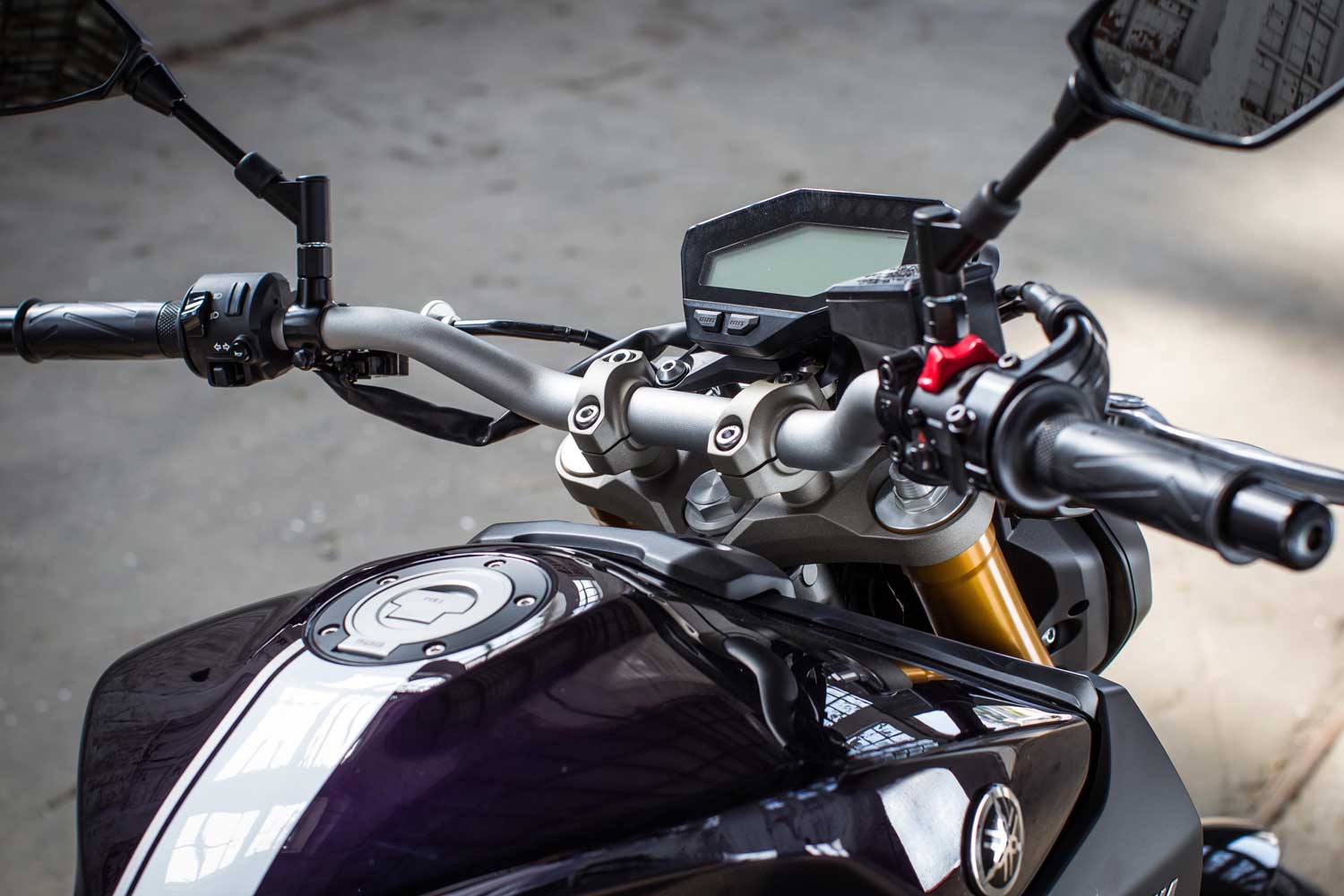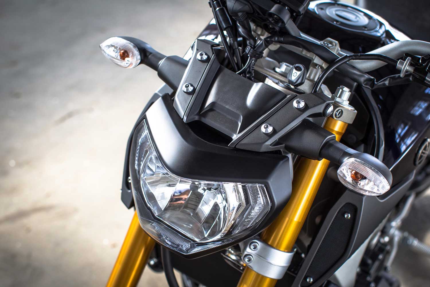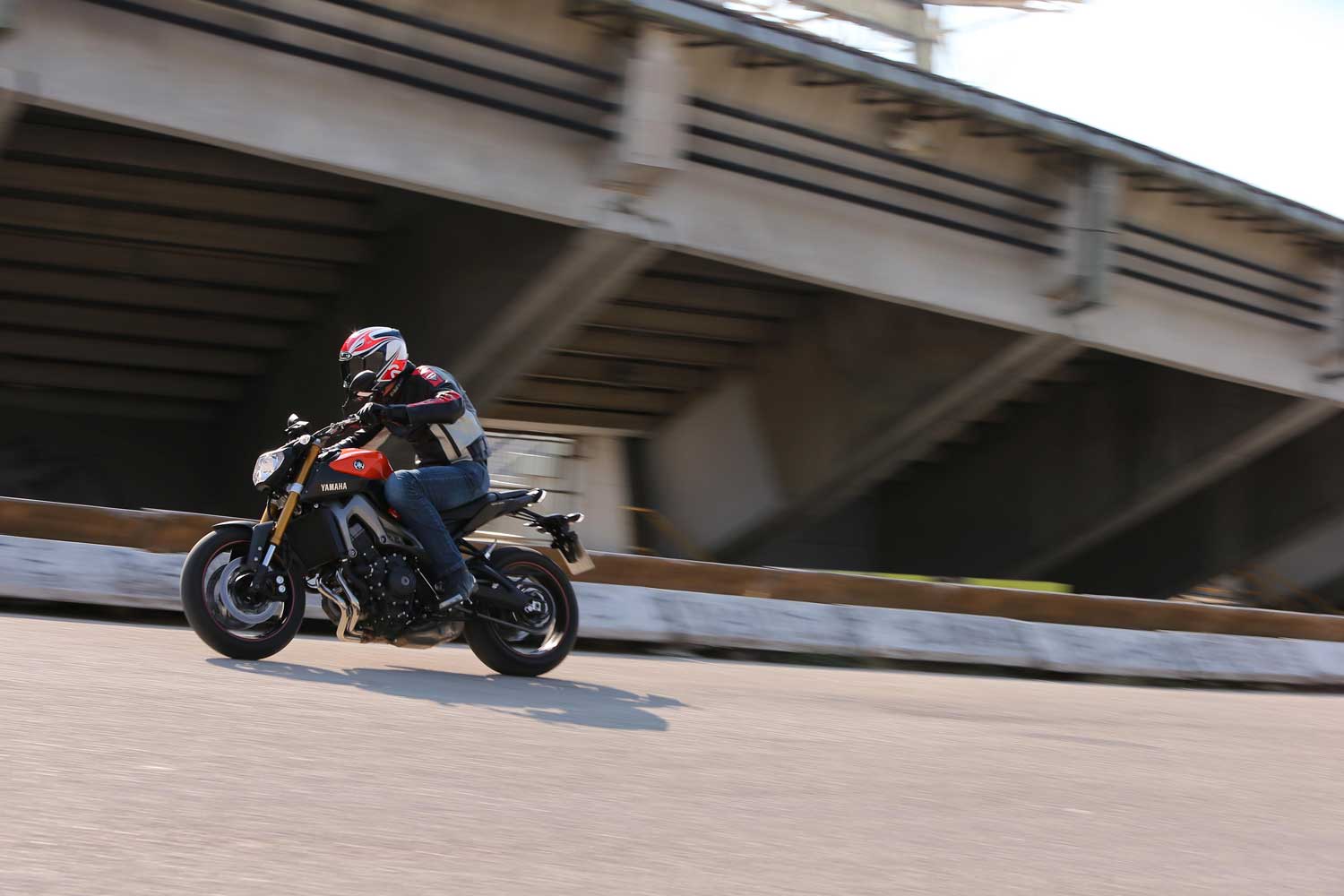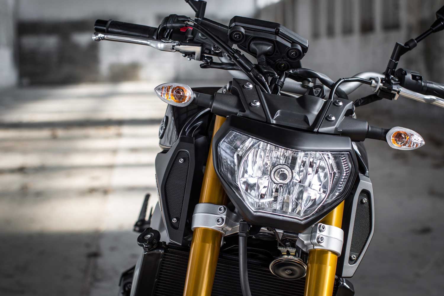 The chassis follows the engine by being essentially sound, but not perfectly sorted. The basics are in place, notably that beefy yet light aluminium frame and swing-arm, plus sporty geometry that helps give the Yam a responsive, urgent feel. The MT steers with a slight nudge of those wide bars, too, yet stayed stable at speed in a straight line and through fast curves alike. But in slower turns it sometimes had a slightly nervous, twitchy feel.