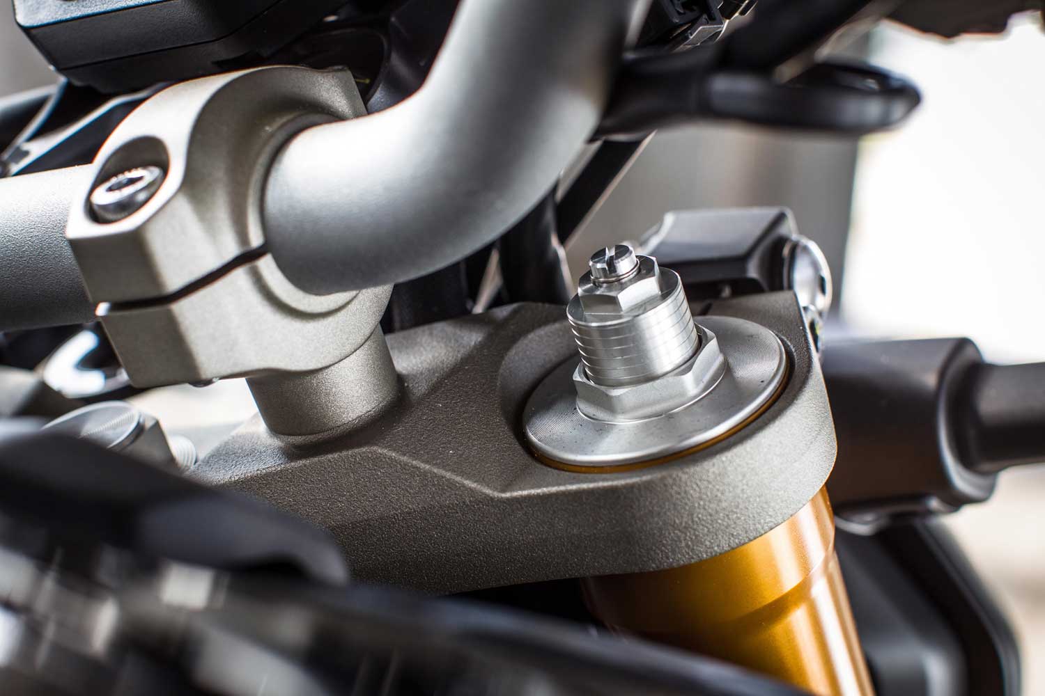 The only drawback is that throttle response isn’t always as smooth as it should be. There are three riding modes, selectable with a small button on the right bar. On start-up you’re in Standard, and have the option of sportier A or softer B, both of which keep the 113bhp max with differing throttle response from the ride-by-wire system. Trouble is, in either Standard or A the response is snatchy, snapping the bike forward almost as though there’s play in the transmission.