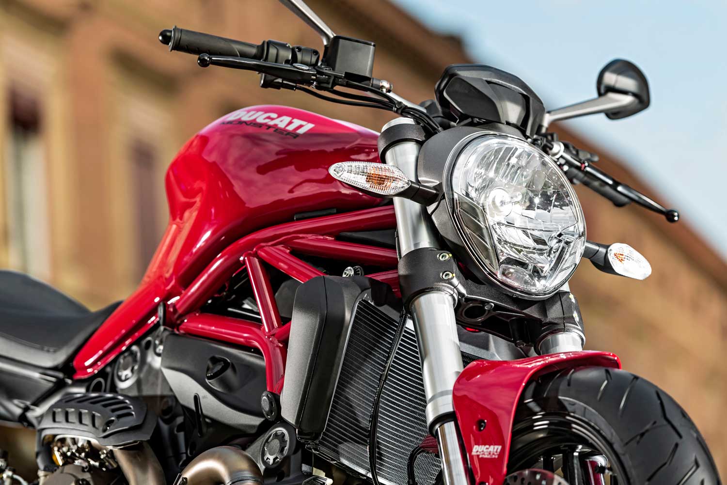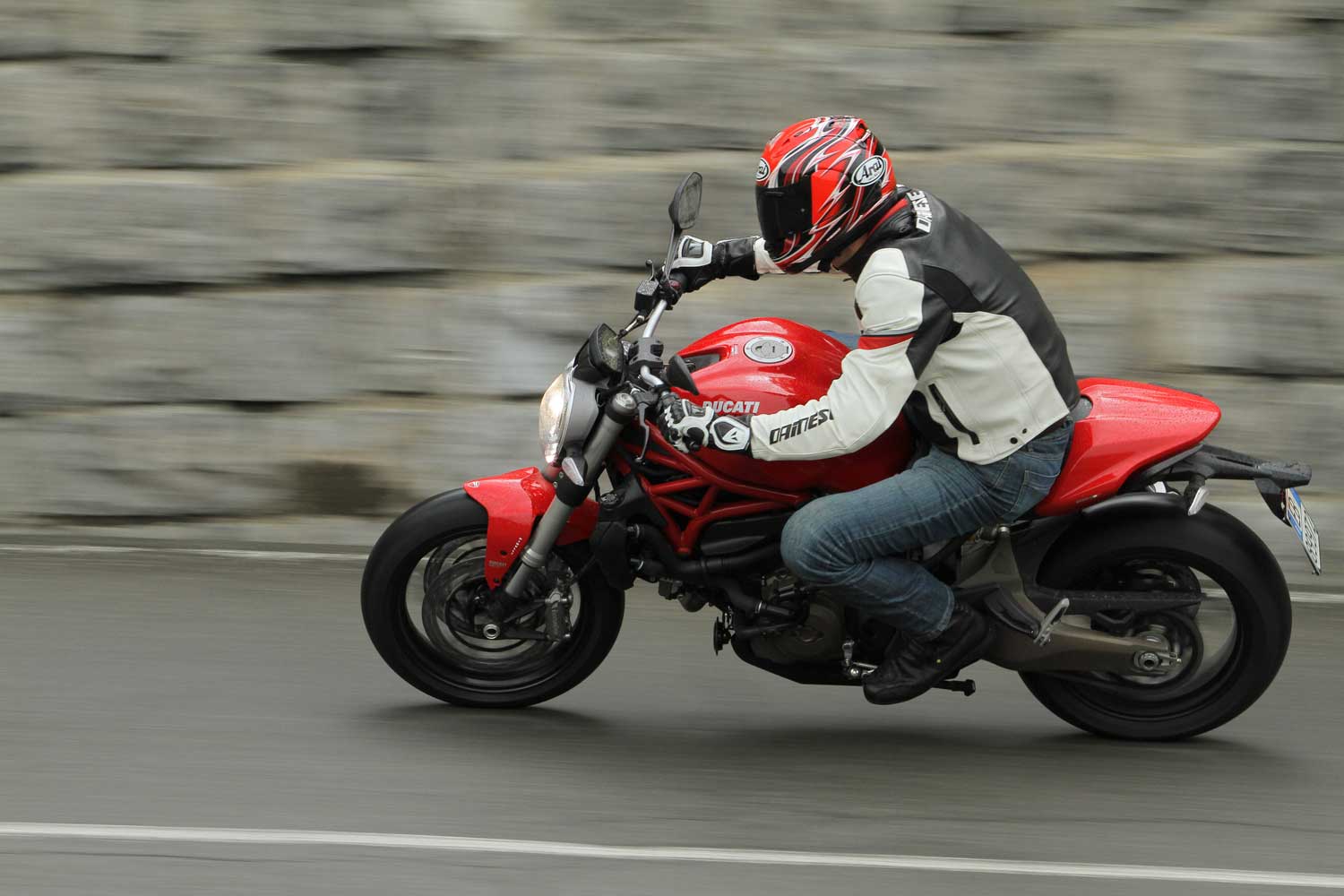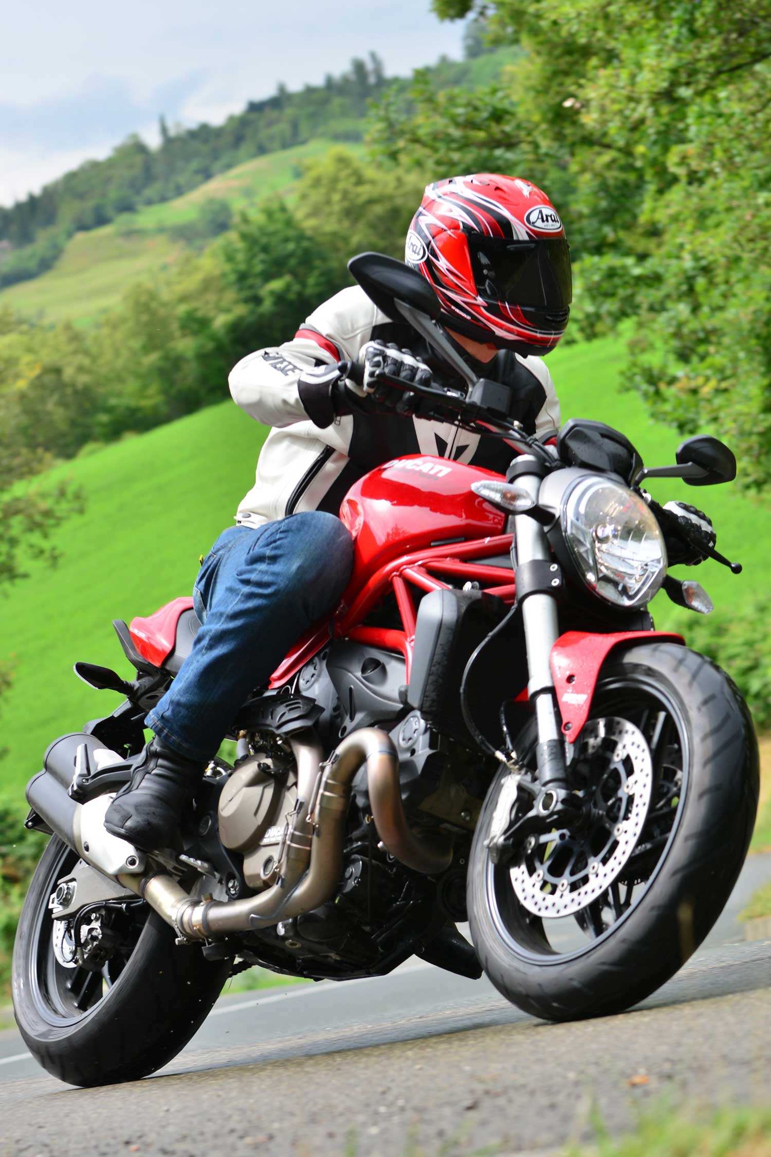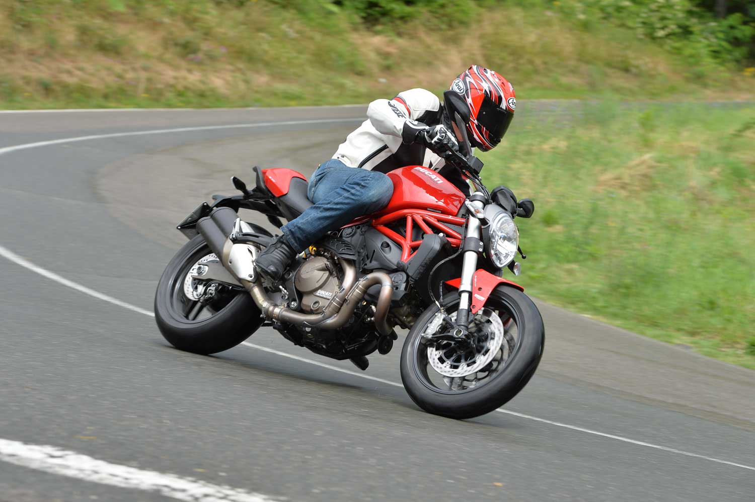 Ride quality was pretty good, the suspension giving a taut, reasonably firm feel while soaking up bumps with notably more efficiency than Monsters of a few years ago. Hard riding on the twisty Futa pass near Bologna, where Ducati develops most of its bikes, occasionally had the 821 moving around slightly in bumpier bends, but it gave plenty of feedback and steered very precisely. The Brembo brake system is superbly powerful, and well backed up by the Bosch ABS system. The rear disc was typically lacking in feel but the ABS meant there was no worry about locking it up.