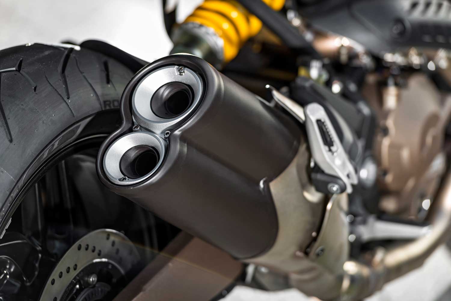 It’s very entertaining and involving; and also more comfortable and practical than you might imagine. That’s true from the moment you throw a leg over the low seat and start the engine, which fires up with a thunderous exhaust note from the side-by-side silencers. Ducati has done a great job with that and also with the fuelling, which is very crisp, helping to make the Monster easy to ride in traffic, especially in Urban mode.