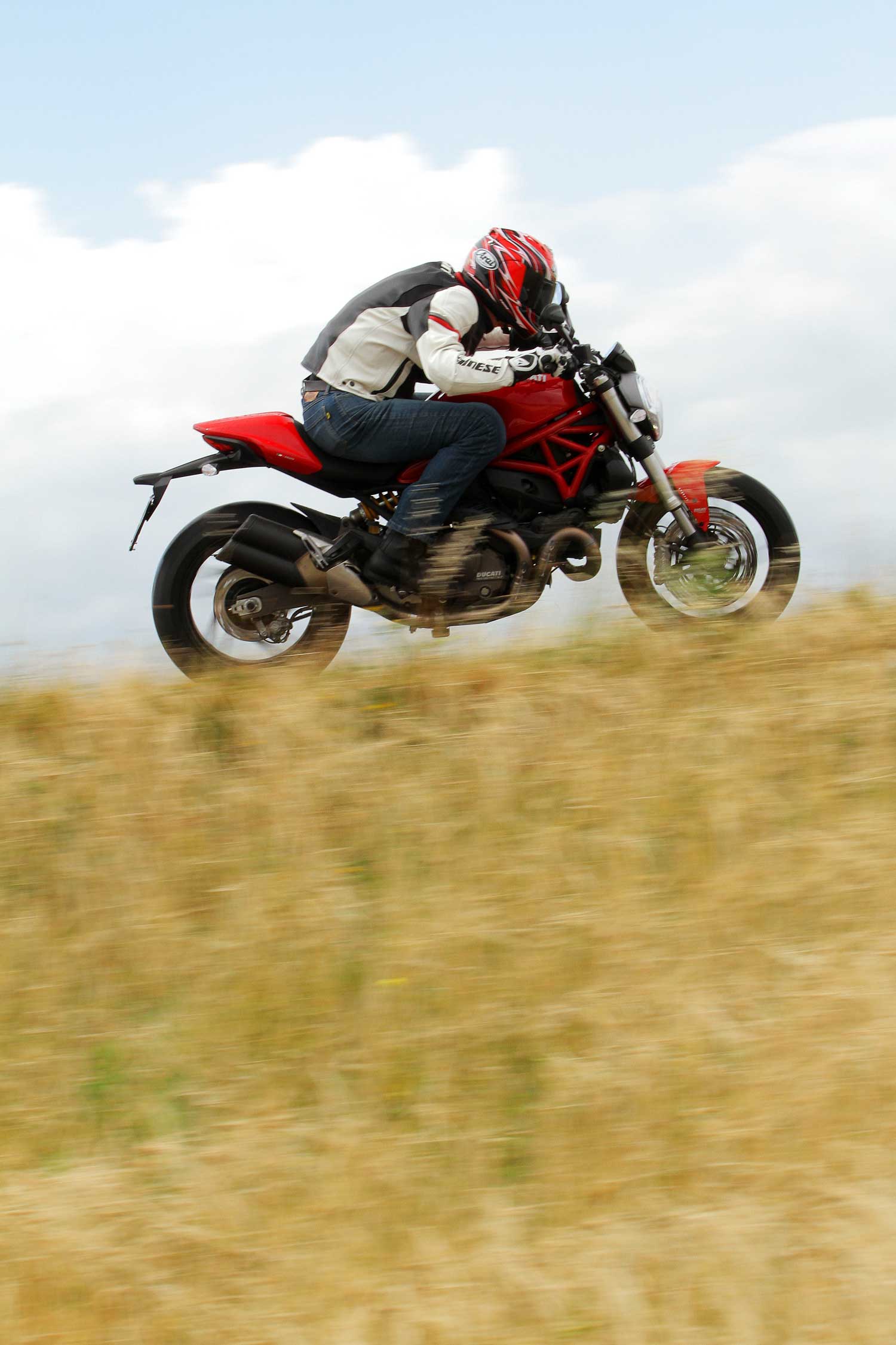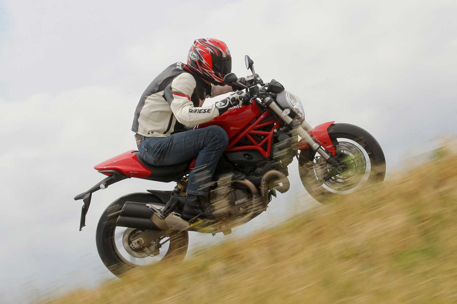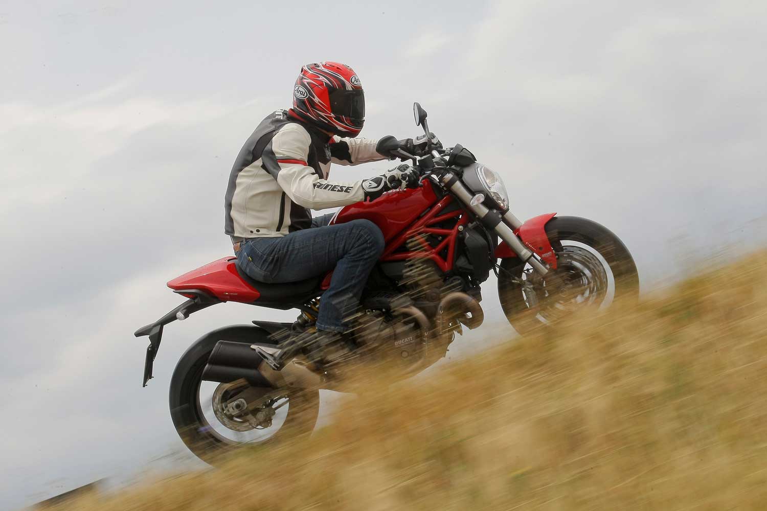 The 821’s electronic features are arguably the biggest difference between this bike and most previous Monsters, and mostly in a good way. The traction control system is a bit tricky to turn off if you want to pull wheelies, but like the ABS it was especially welcome in the wet. The LCD instrument panel is less eye-catching than the 1200’s classy coloured display but still shows fuel consumption and range to empty, incorporates a lap timer and shift light, and is adjustable for brightness.