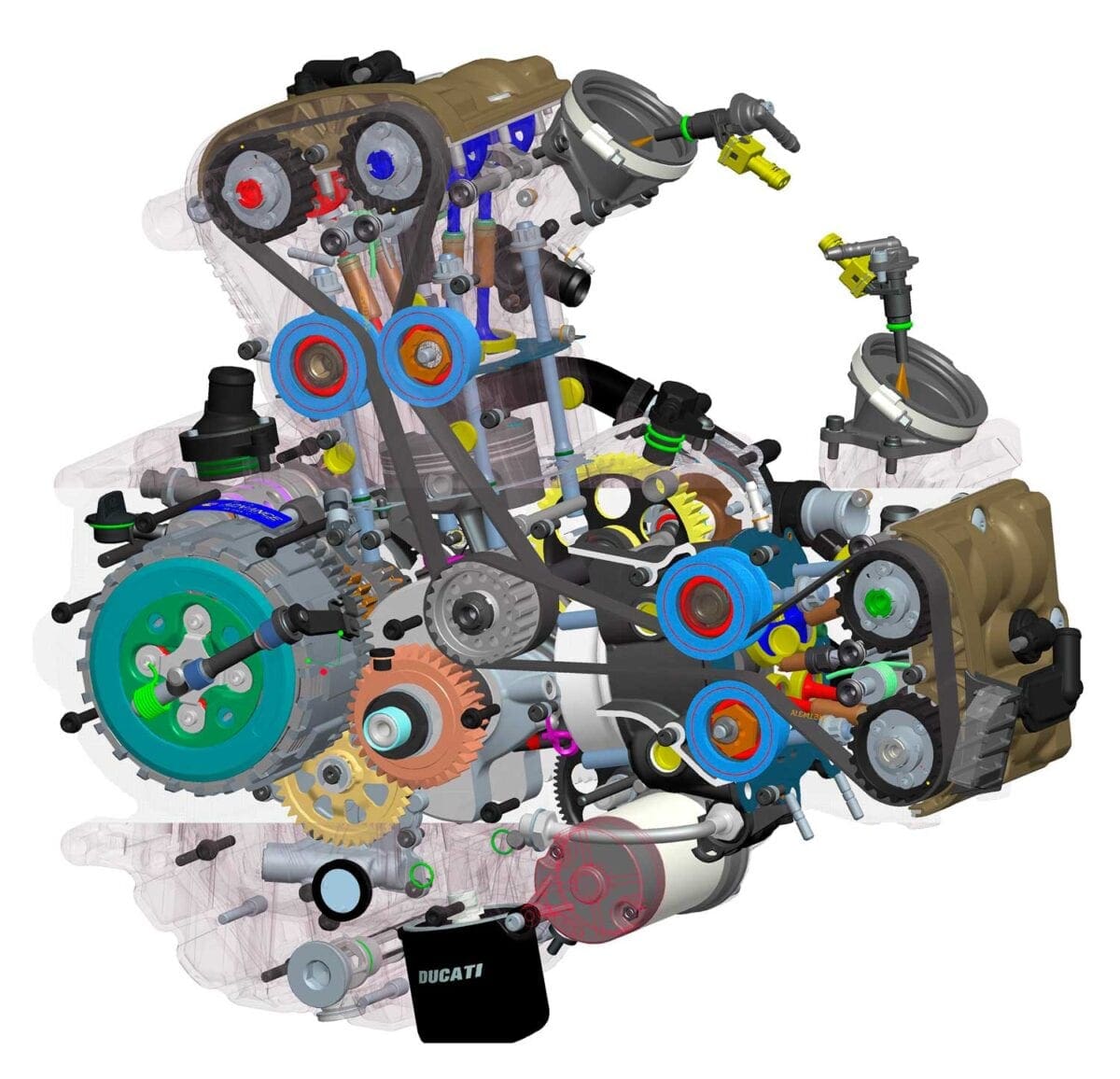 Engine: 821cc, liquid-cooled, dohc 8-valve desmo V-twin