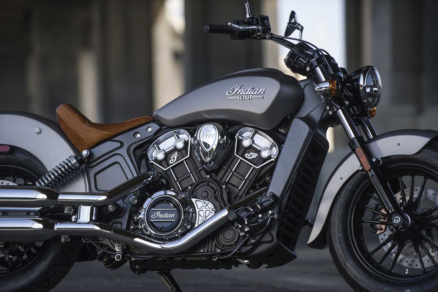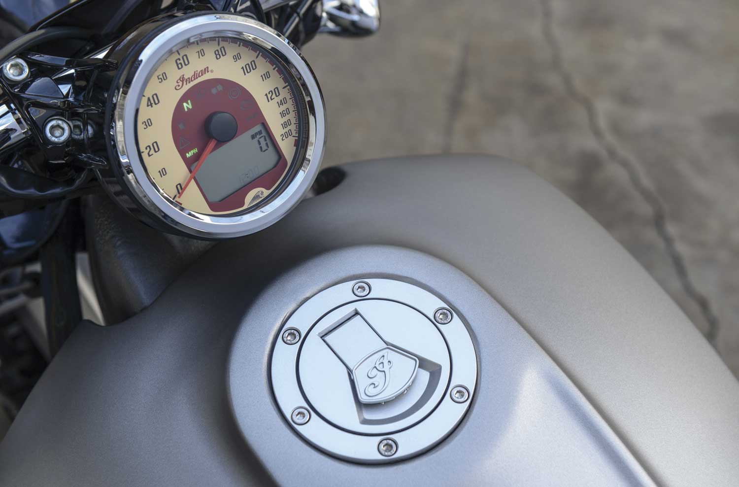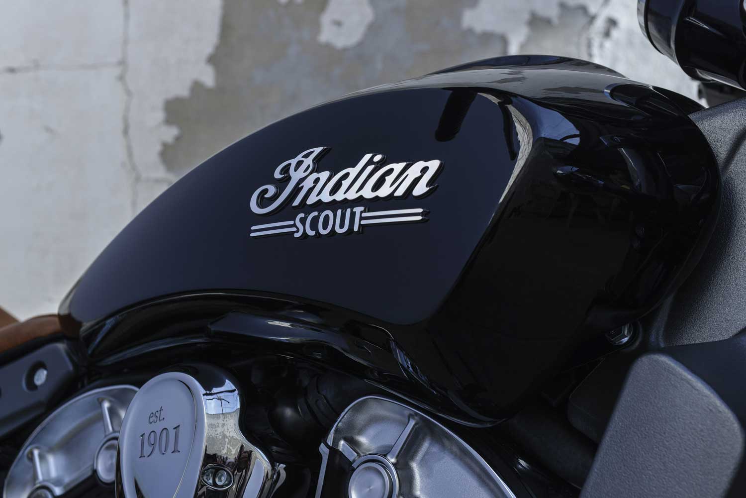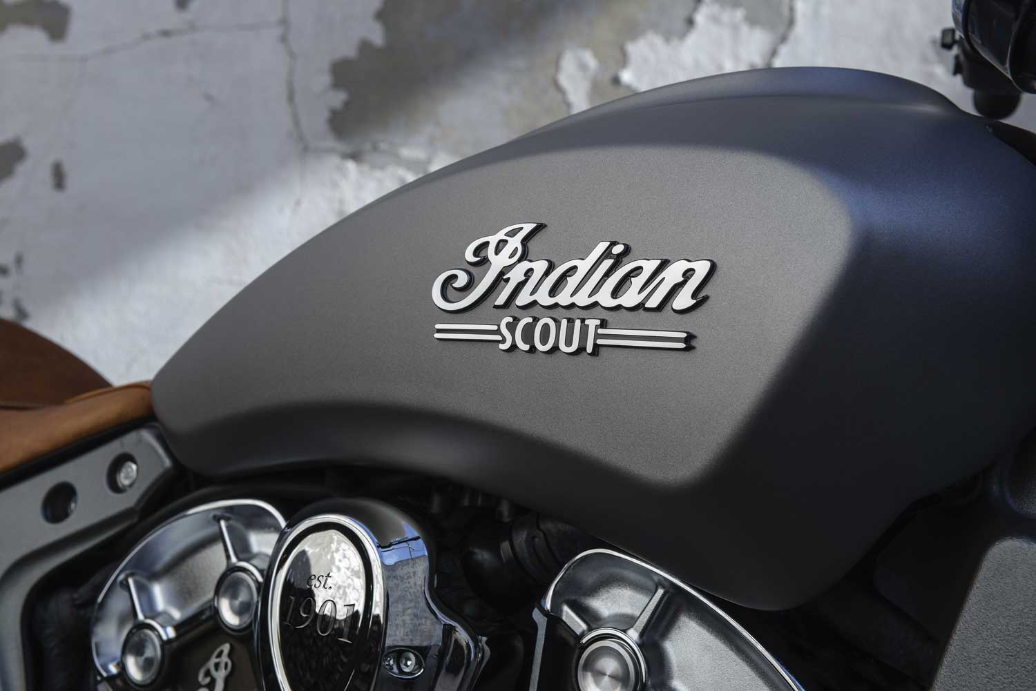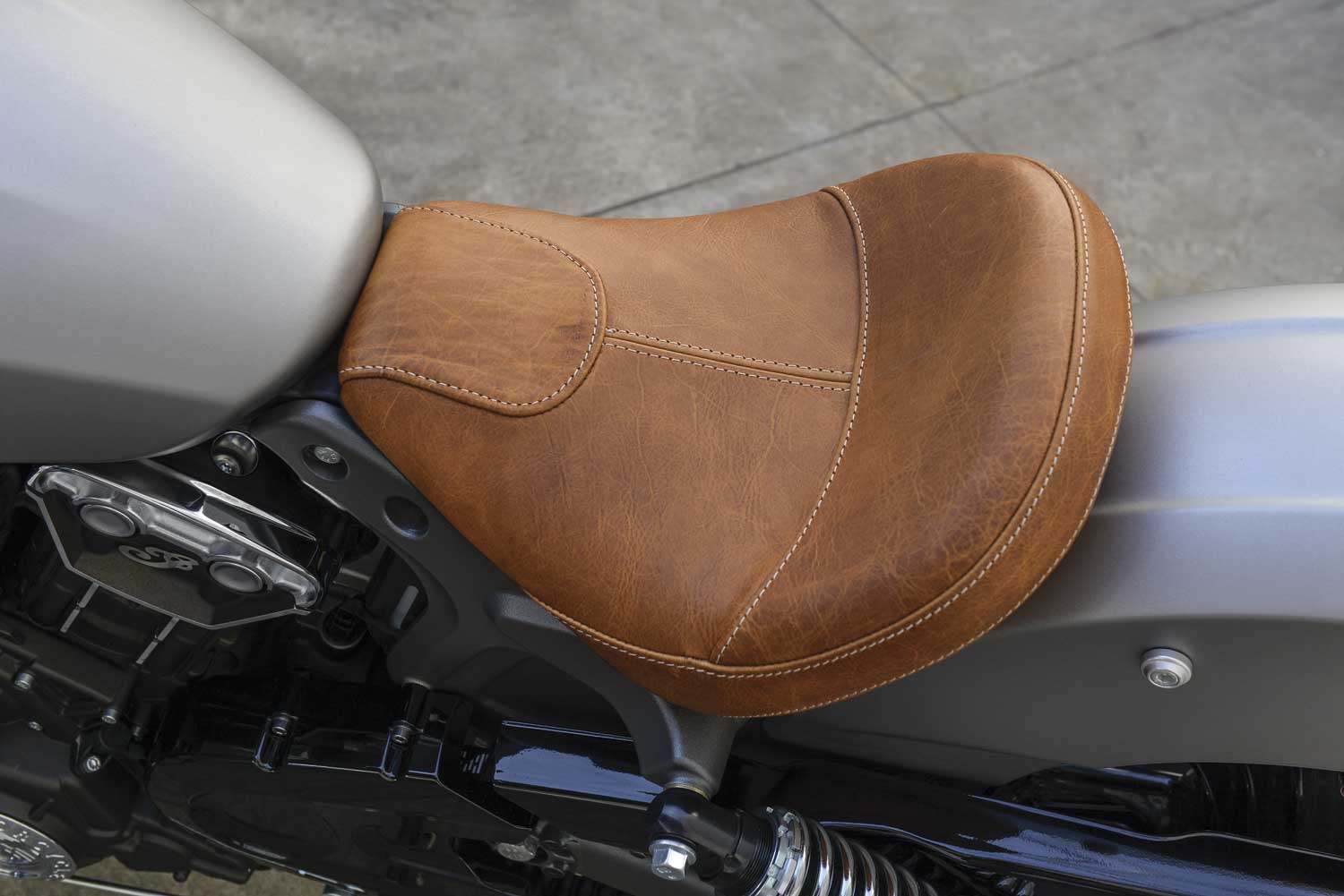 The solo seat echoes the original India Scout from the 1920s, shod in sealed tan leather, with a height of 643mm.