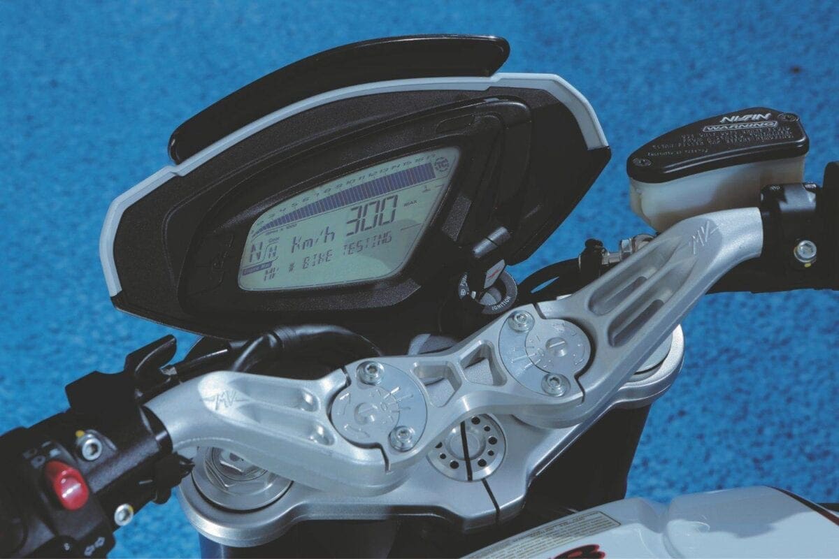 So it’s refreshing that the Dragster’s throttle response – the ability of software to match engine behavior to the rider’s bidding – is vastly superior to the early 675 engines. The 800’s spring-loaded fly-by-wire throttle is still very light, lacking the stiction of a wire cable in a braided sheath. But, crucially, it delivers what you expect and when you expect it. And the new software is downloadable, for free, for all existing MV triple owners.