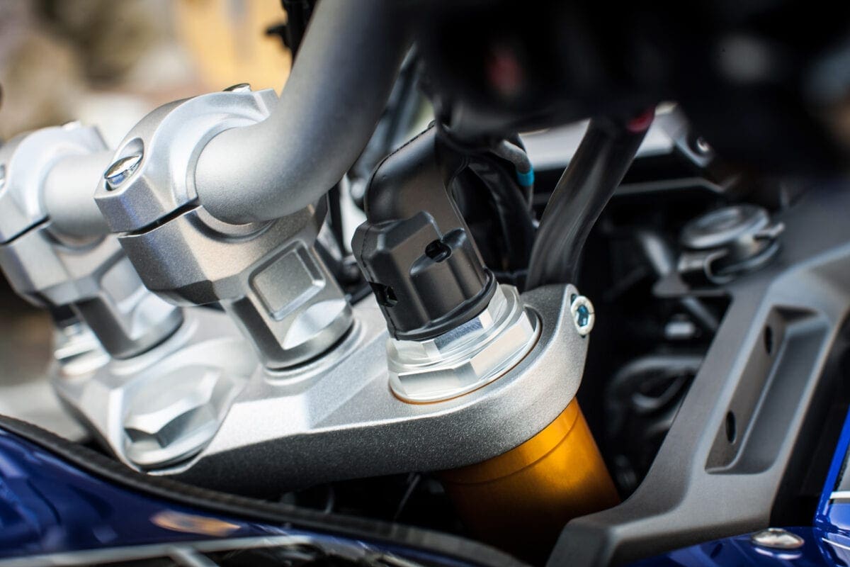 In a class that features some of highest-tech chassis equipment manufacturers have yet thrown at a motorbike, the Super Ténéré might seem to be treading water. The GS gets semi-active suspension, the KTM Adventure gets cornering ABS, and the Super Ten gets electronic screwdrivers. Stepper motors on top of the 43mm KYB forks, and alongside the KYB rear shock respond to button-pushes by the rider, selecting preload set-up at standstill, or damping settings on the move.