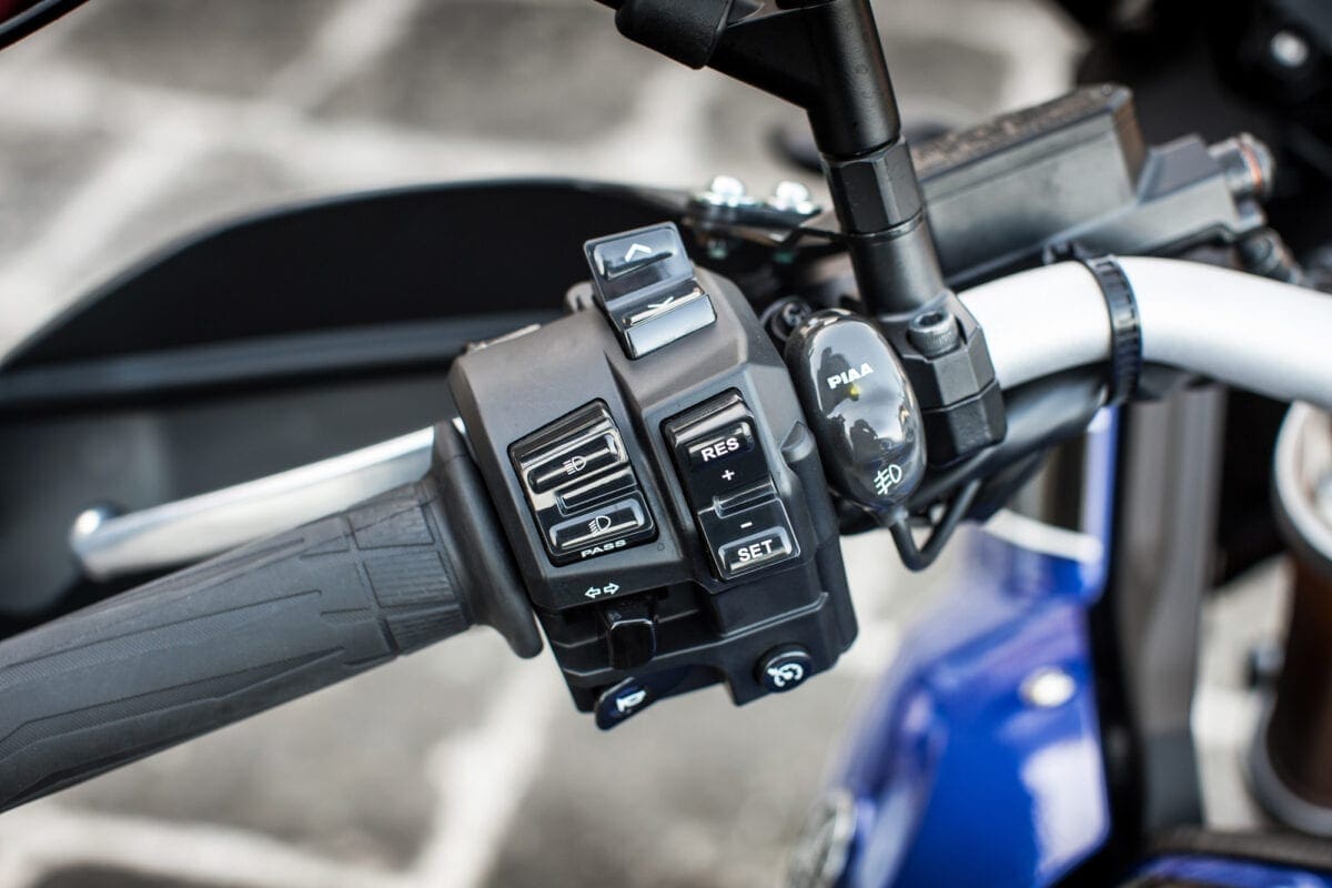 Controlling the Super Ten’s various engine and chassis settings, and navigating the dashboard menus to do it, is an easily remembered series of button pushes. Moving around these menus, which also give control of the heated grip settings and the usual trip functions, uses buttons on the left bar. The right bar has engine mode and cruise control settings, and a third set of buttons mounted on the clocks are for traction control.